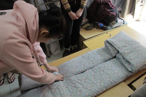 当天,浙江警察学院优秀学员应舞蹈系之邀前往学生公寓指导卫生整理。学员们首先向大家展示了警院学生公寓的图片,整洁的内务、严谨的作风,无不令人钦佩。接着,在他们的讲解和帮助下,开始协助舞蹈系同学整理宿舍物品、叠放被褥等,寝室顿时变得井然有序。最后,警院学员向同学们讲述了寝室安全隐患方面的相关知识,就日常生活习惯、紧急逃生方式、实用情景教学等方面进行详细讲解示范,给现场同学们上了一堂生动的安全教育课。