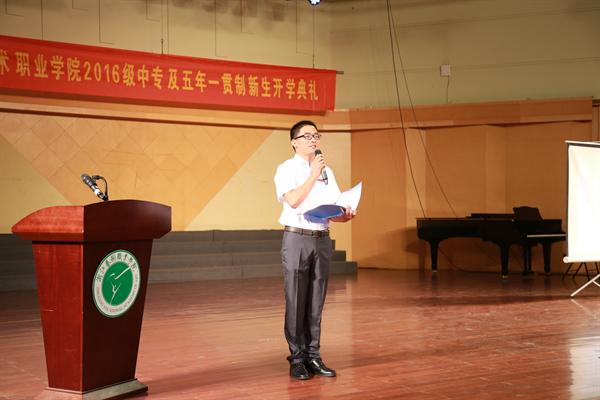 新生代表、2016级舞蹈系五年一贯制班的石尚同学在发言中说到:“浙艺名师荟萃,他们都是浙艺的骄傲,也是我们学习的榜样。浙艺承载着我们的梦想,也寄托着我们对明天的希望。我们要尽快适应新环境,为自己树立明确的目标,一步一个脚印,一步一个台阶,刻苦勤奋,努力学习。” 典礼上还播放了学院60周年校庆宣传片和迎新视频以及各系党总支副书记給同学们的寄语。
