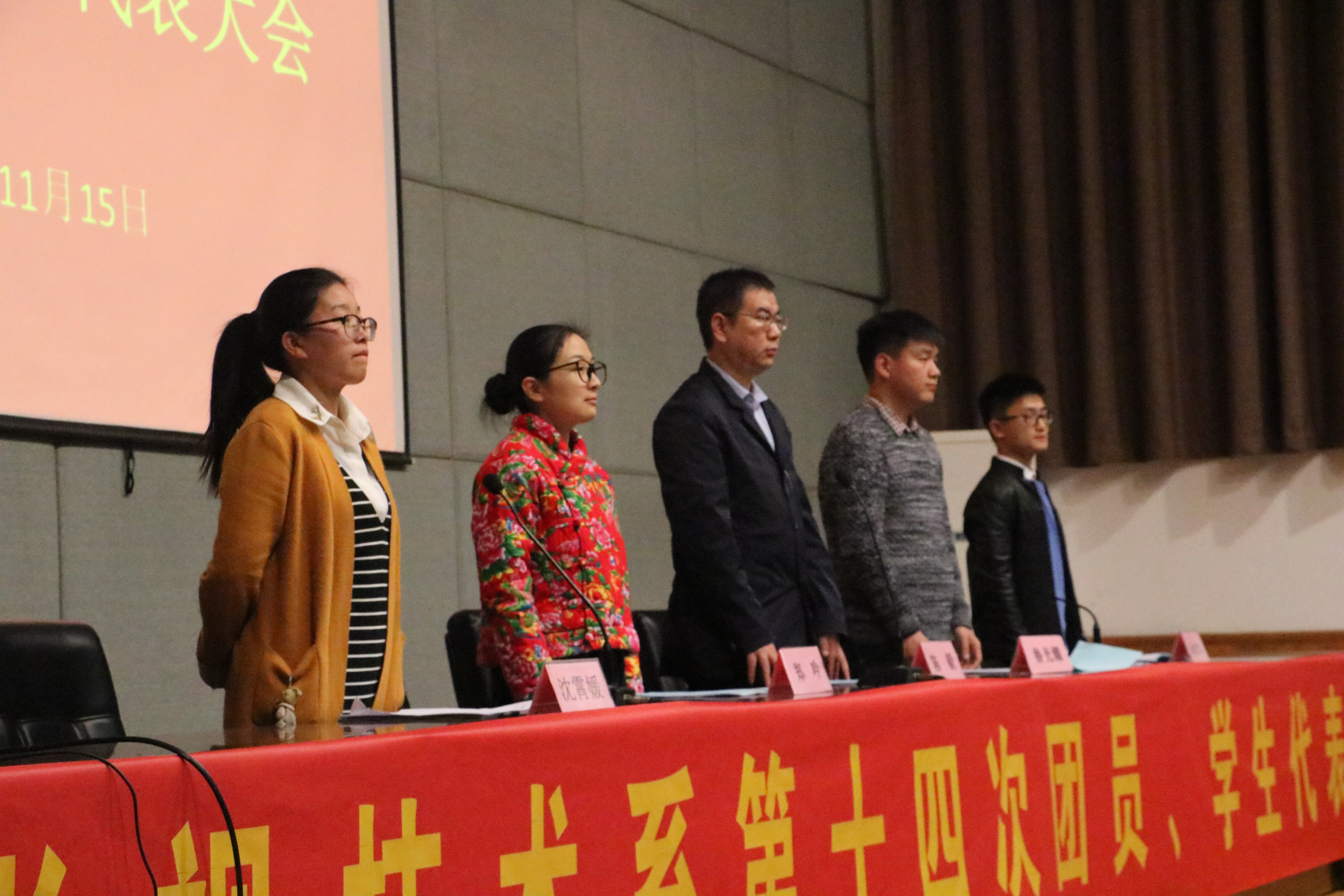 首先,大会在庄严的国歌中拉开帷幕,陈毅肯定了影视技术系团学的凝聚力和学风,也肯定了13届系团学的工作能力,并对今后的工作提出了真、善、美的要求。系团总支书记沈霄媛讲到新一届学生会应当创新活动,丰富同学们的课余生活。第十三届系学生会主席余家荣呼吁新一届学生会成员应该积极参加各类活动,并应该与其他各系保持联系,主动交流,加强学习。