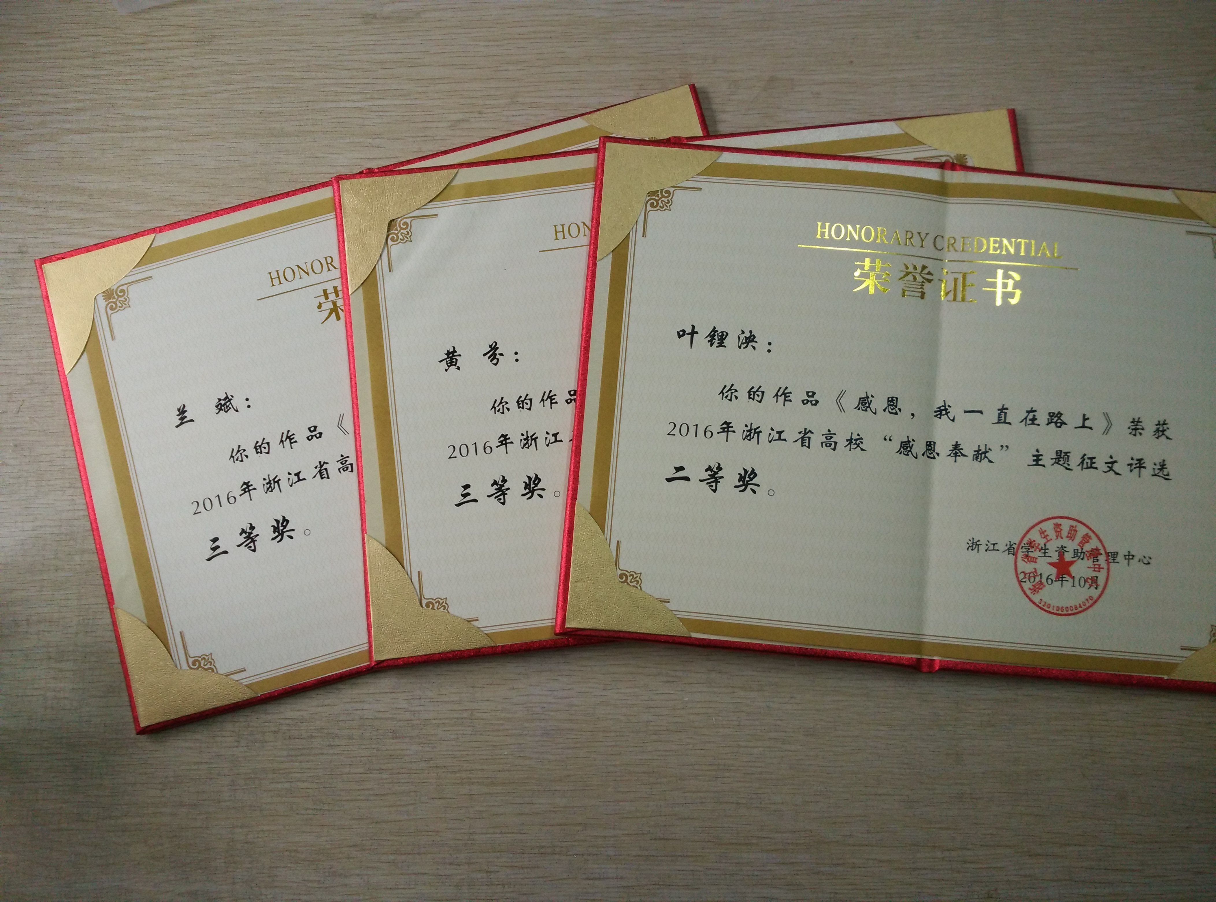 我院学生在2016年浙江省高校“感恩•奉献”主题征文活动中喜获佳绩