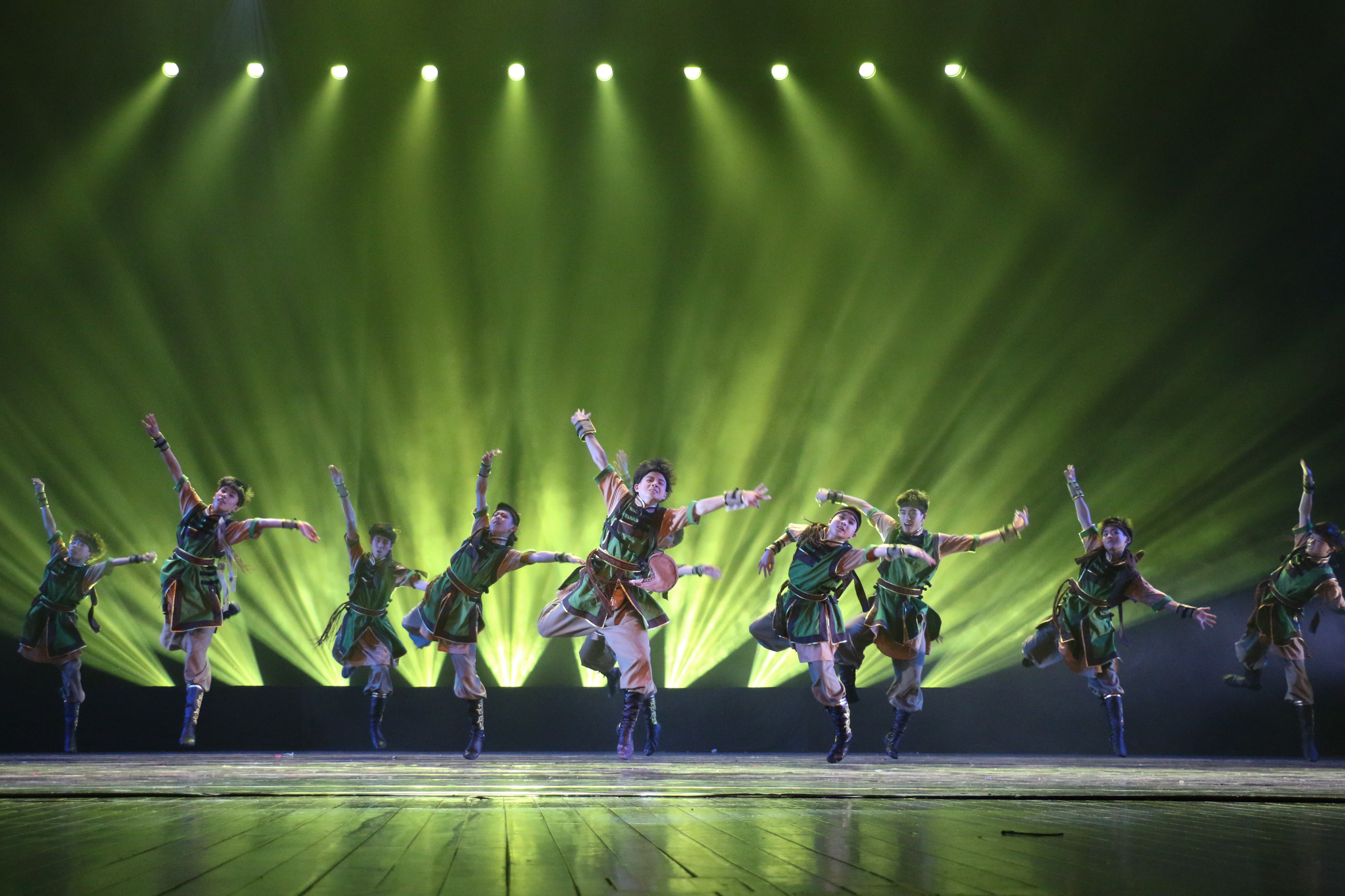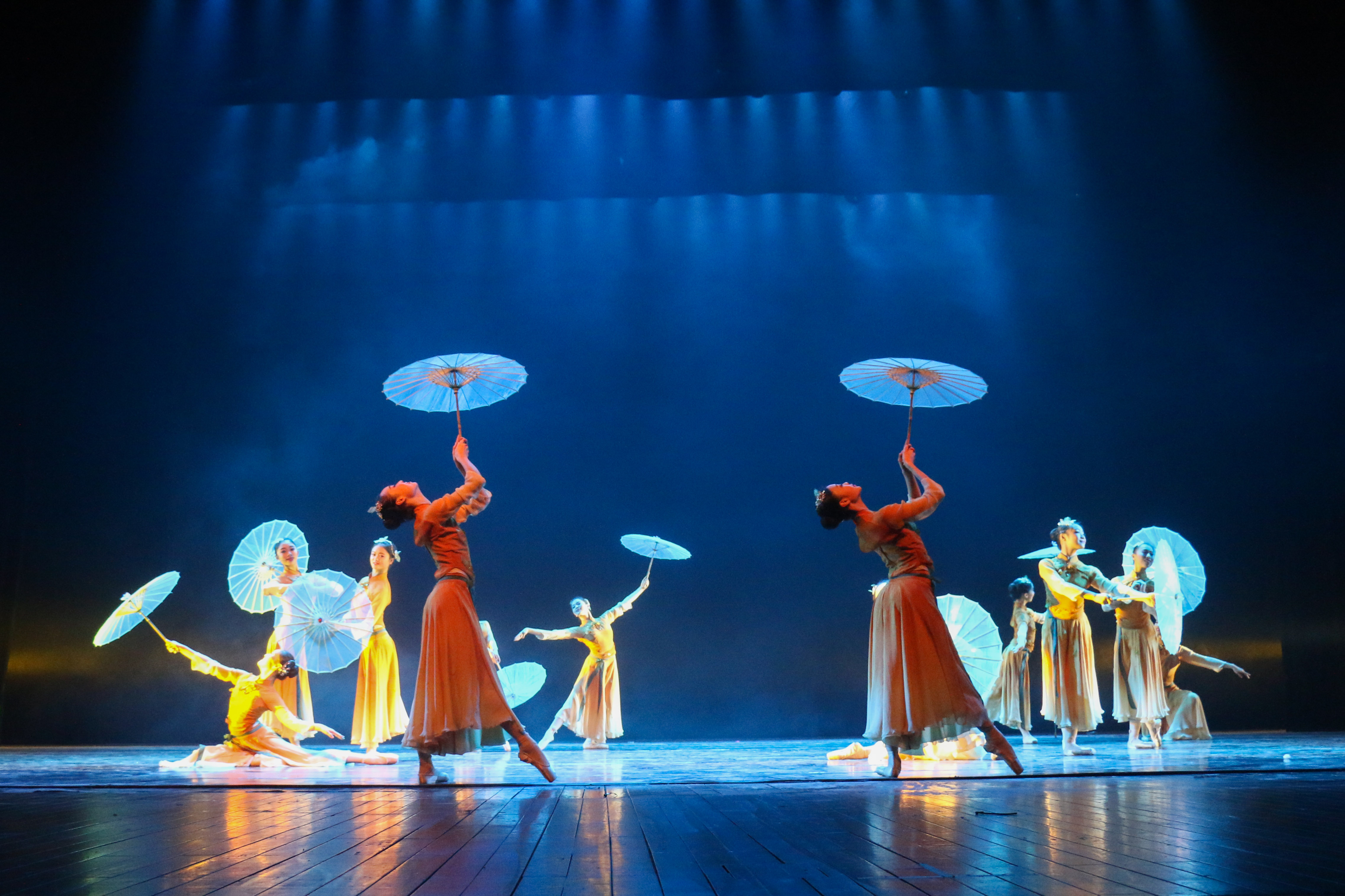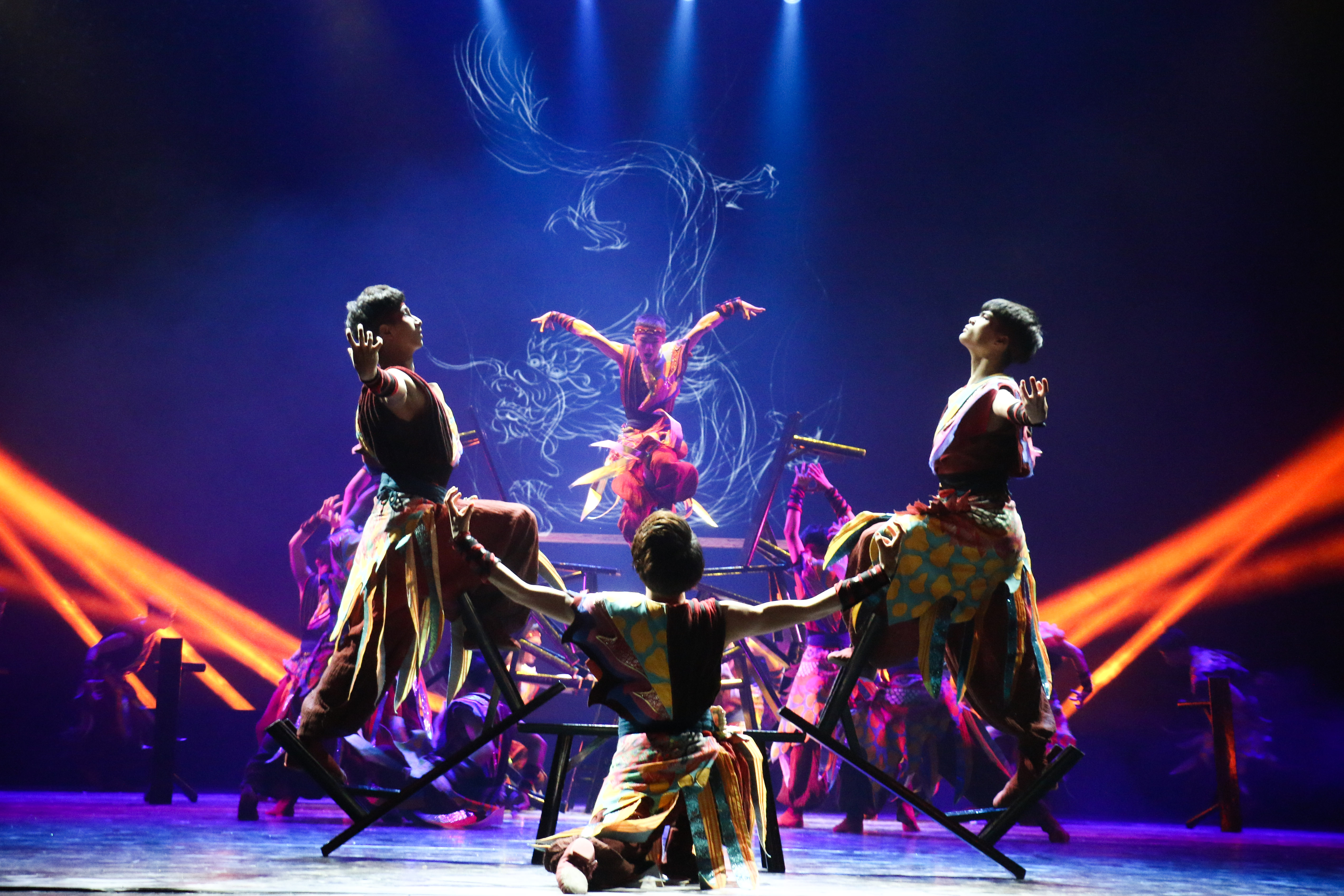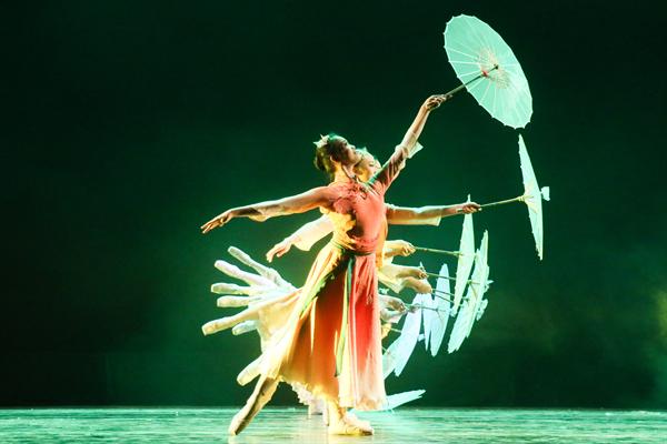 展演通过学习剧目、新苗培养、校企合作、创作剧目四个板块,全面展现了舞蹈系学子们的风采。《 摇篮》:他们最初像婴儿一样,在舞蹈系这个摇篮里茁壮成长,是老师们的精心哺育,帮他们写下美丽的篇章。看!他们稚嫩的笑颜是多么令人难忘。《顶碗》:一群来自舞蹈系14级一贯制班的姑娘们,顶着瓷碗,带着蒙古族特有的热情,伴随着马头琴悠扬的声音,给我们送来了草原的祝福。《吉祥树》:不同于女孩柔情似水的三道弯,傣族汉子带来的,是如跳跃火苗般的三道弯。浓郁的民族风情,充满神秘色彩;古老的东方文明,赐给他们的是刚毅与虔诚,祈祷着来年的吉祥与幸福。《 新苗培养》:寒来暑往,他们像一株株新苗,在这里播种理想,耕耘生活,收获硕果。次次历练,是为了对明天更加坚定向往,是成功路上的风景。《戈壁沙丘》:草原是蒙古汉子最好兄弟,捧着酒壶,在自己最熟悉的地盘上尽情撒野,是一件多么酣畅淋漓的事情!即使是沙漠与戈壁也丝毫不能阻挡他们前行的步伐,家,就内心深处最真正的渴望。《廊桥印象》:柔情的女子与辛勤的男子,男子们倾力打造,女子用自己的温柔来为这幅图画添加美好。国家艺术基金资助项目男子群舞《凳之龙》运用缠、拧、倾、绕的传统古典舞动作精髓,展开对龙之形态的动作设计,而后利用长凳进行龙之骨架的构成与变化,传达出中华民族的“龙之骨气”,蕴意深远。《 鼓舞声花》:江南少女的俏丽与花的绽放在舞蹈里相互结合,用阵阵鼓声与舞动的姑娘来表达出江南的秀美。《雨后梧桐》:撑着油纸伞的女孩,踮着脚尖站在梧桐树下,等待着那个如她般美好的人物出现……《古舞新韵》:绚丽的技巧和古典的韵味相交融,给我们带来了曼妙的舞姿。