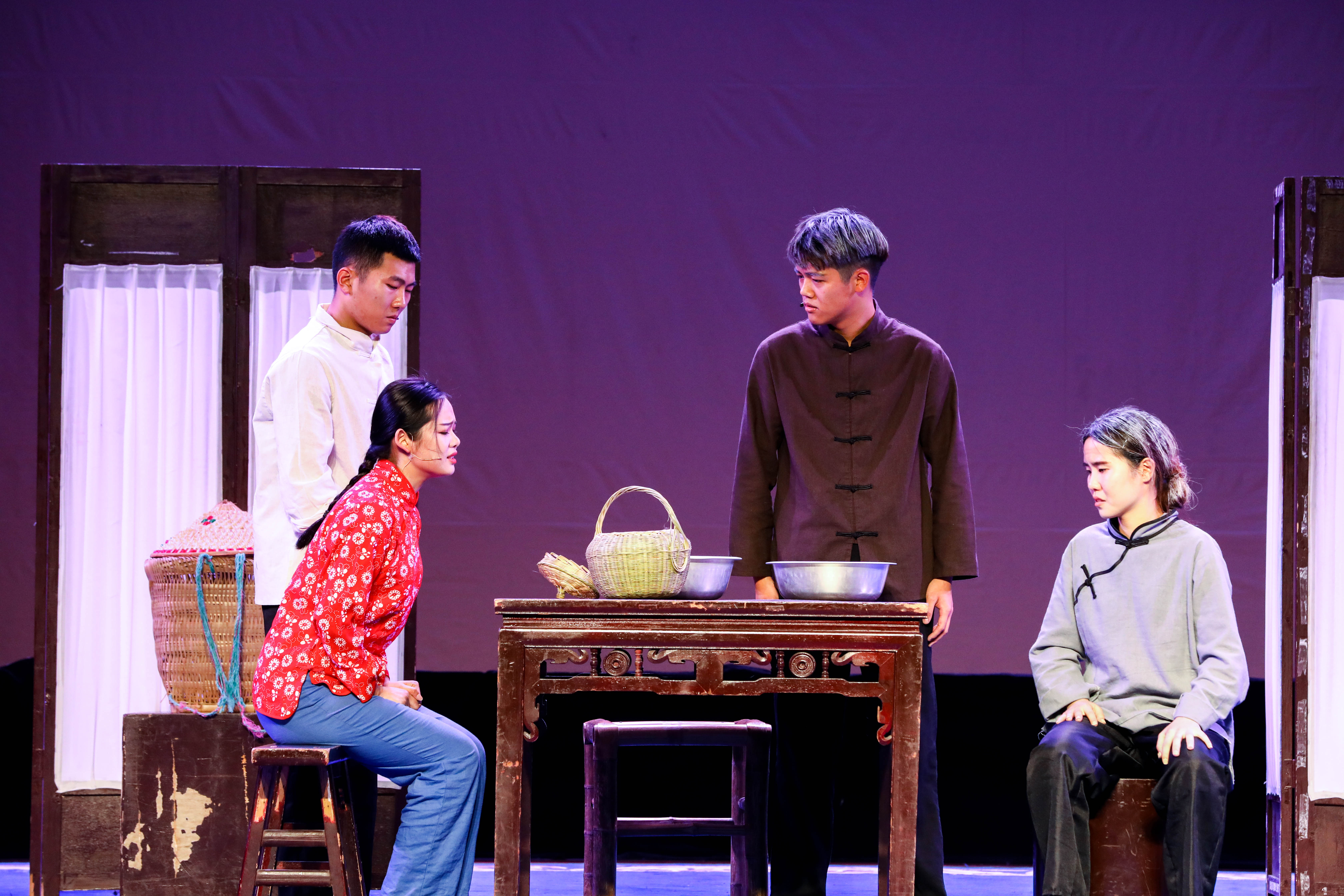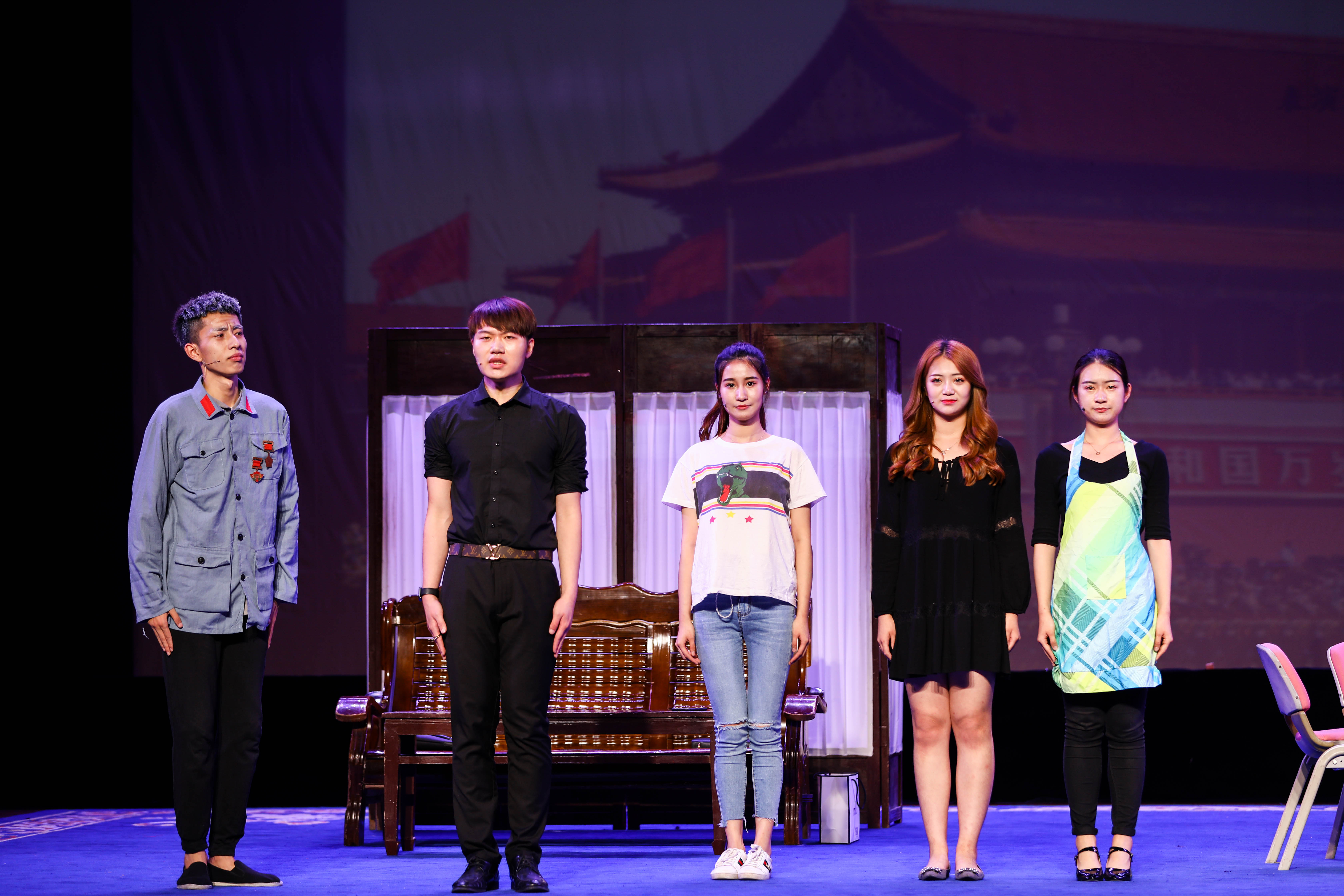 孙学增导演原创作品工作坊——江南红村采风•原创作品汇报《红色•青春》主题晚会,5月17日晚由浙江艺术职业学院戏剧系表演艺术专业学生在浙艺小剧场倾情上演。小品《双别》《七斤半面粉》《挑夫》《映山红》、情景表演《卫生队》《徐昌胜》等7个节目精彩呈现,把观众带到战火纷飞的抗战岁月,不忘初心,感人肺腑。此次演出是表演艺术专业师生们赴长兴革命老区采风后创作出的艺术成果。长兴县委宣传部副部长刘月琴、浙艺院长黄杭娟、院党委宣传教育处处长马向东、戏剧系党总支副书记李旭芳等观看演出。