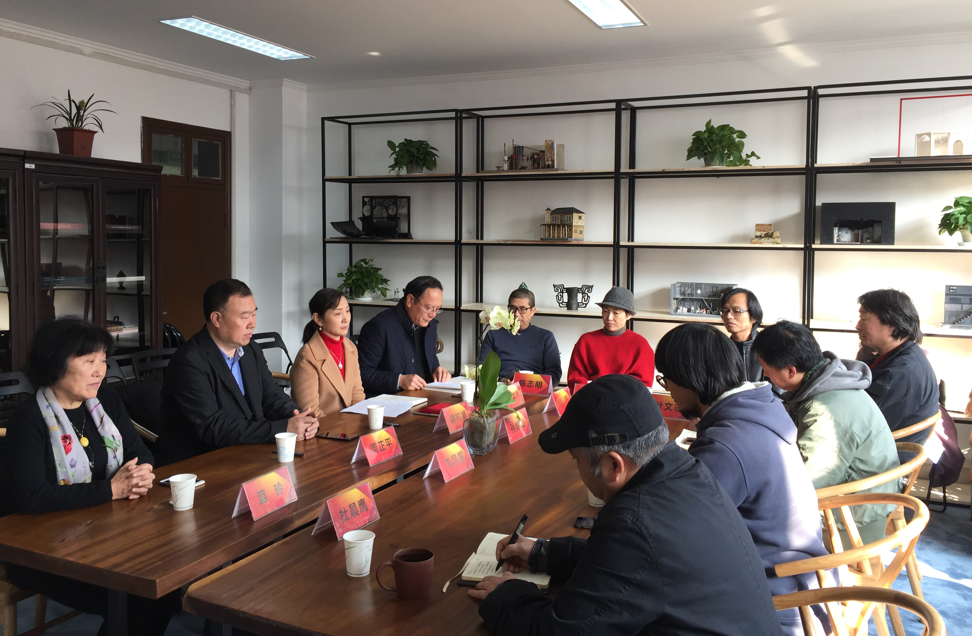 黄杭娟对两位特聘教授长期以来一直支持我校的专业建设发展表示感谢。她提出,美术系应坚持自身特色,打造舞美品牌特色,做精做强。然后,她从“十三五”师资发展规划、优质校建设、学科带头人的评聘角度出发,希望美术系在两位大师的带领下,利用好本身优秀平台,充分发挥资源优势,立足浙江,走向国际,创作出更多优秀作品。