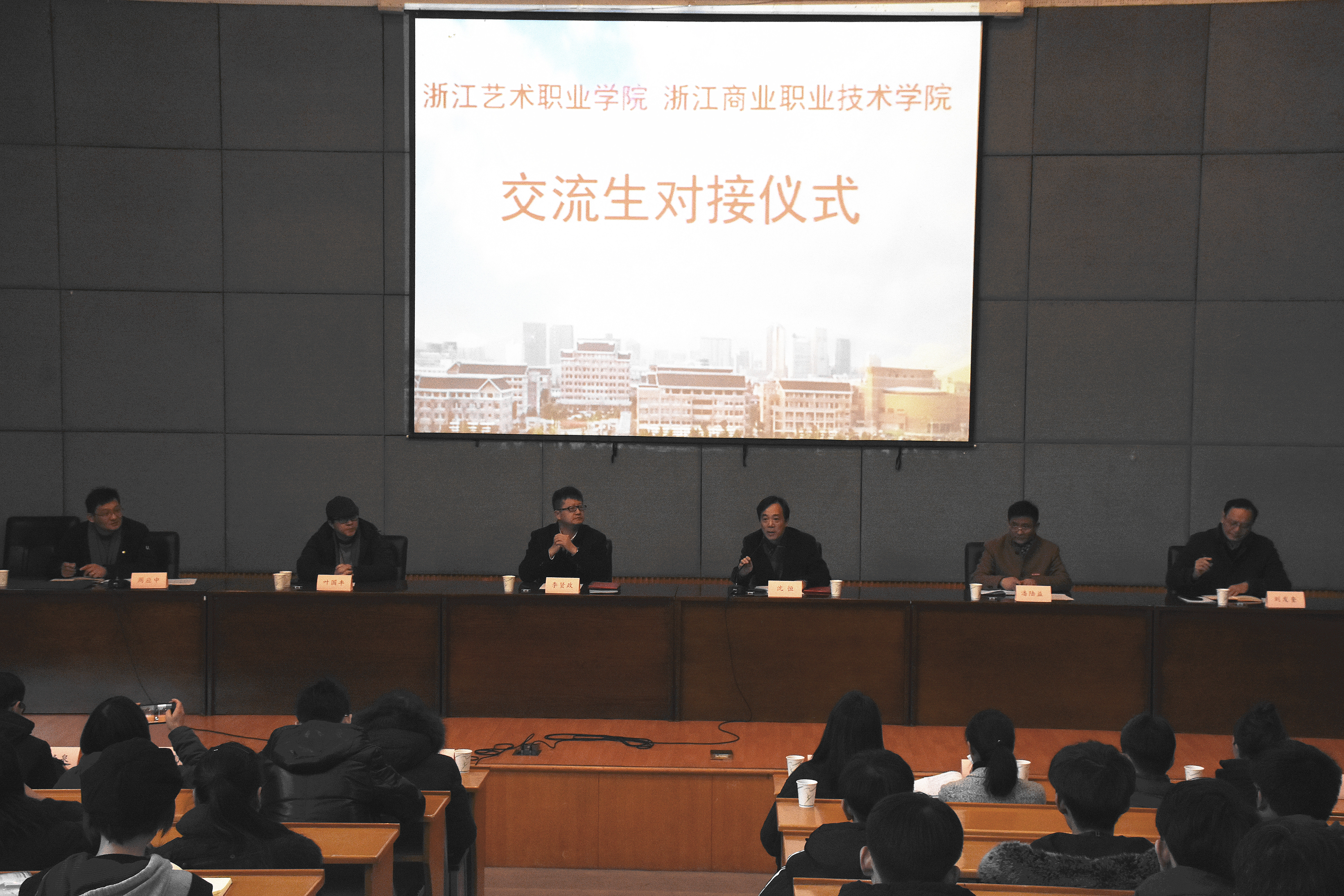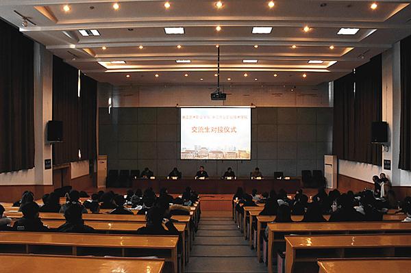 1月10日上午,浙江艺术职业学院与浙江商业职业技术学院交流生对接仪式在我校图书信息中心报告厅举行。浙江商业职业技术学院副校长李贤政、教务处处长潘陆益、艺术设计学院院长叶国丰,浙艺副院长沈恒、美术系副主任(主持工作)刘发奎,两校相关专业教师和班主任以及77名同学参加了对接仪式。会议由我校教务处副处长(主持工作)周应中主持。