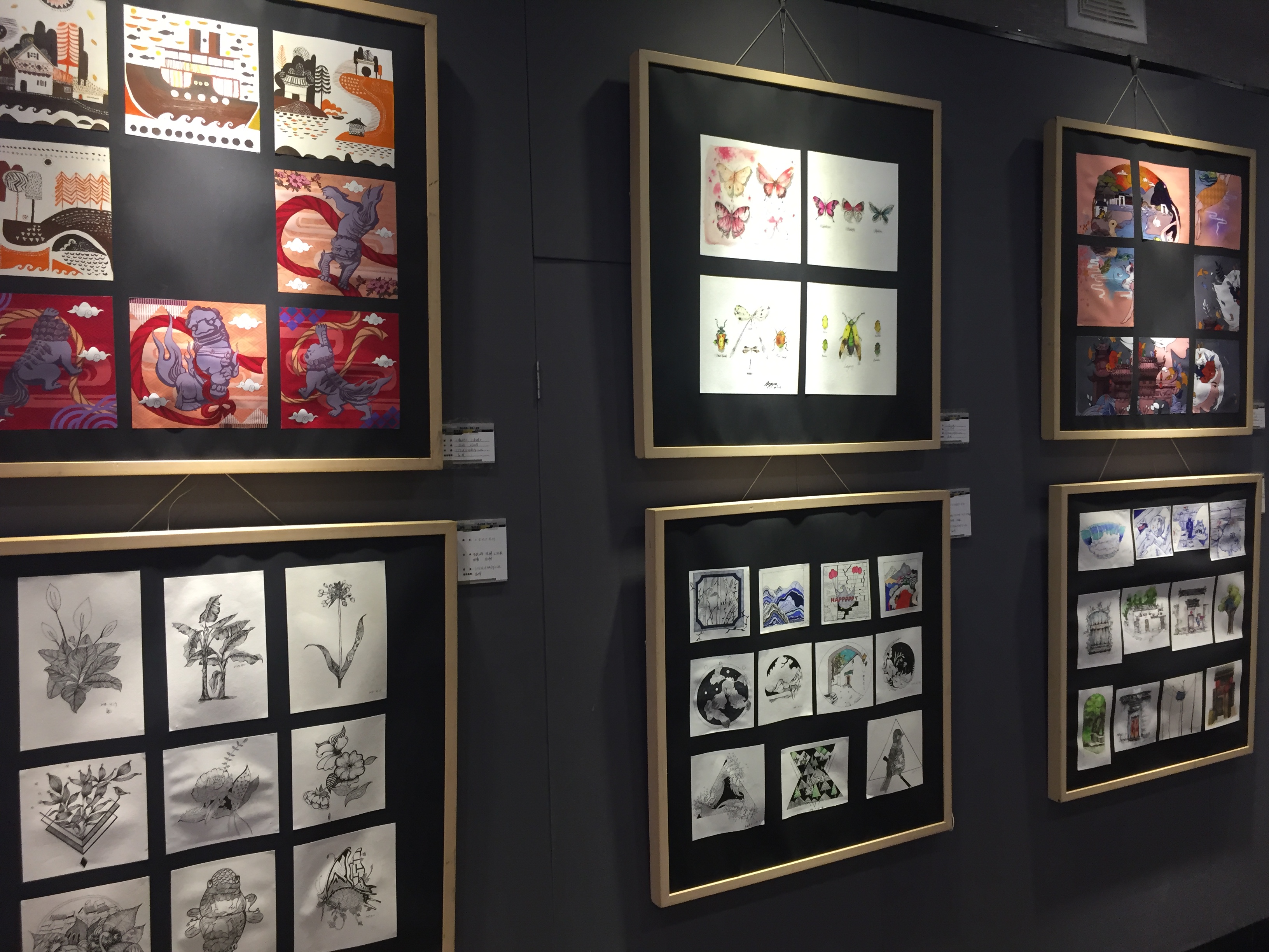 写生之旅,同学们每天早出晚归蹲点画画,见识过艳阳高照下的白墙黑瓦,也瞧见过烟雨朦胧下的小桥流水。他们将阳光晕染在画纸上,用烟雨勾勒风情万种,一笔一画满含努力,欲语还休让人沉迷。端午假期,师生们放弃了休假时间,对作品进行装裱布展。