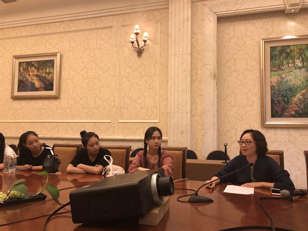 参观结束后,同学们与宋城集团领导开展交流,汇报了在浙艺一年来的学习心得和体会,畅谈在校期间的学习生活情况。同学们纷纷表示,之前虽然对宋城集团有所了解,但通过这次实地走访和参观,更加深入地了解了宋城集团,对自己既是学生又是将来宋城集团员工的双重身份感到骄傲和自豪,必将会加倍努力,以优秀的成绩来回报集团及学校。