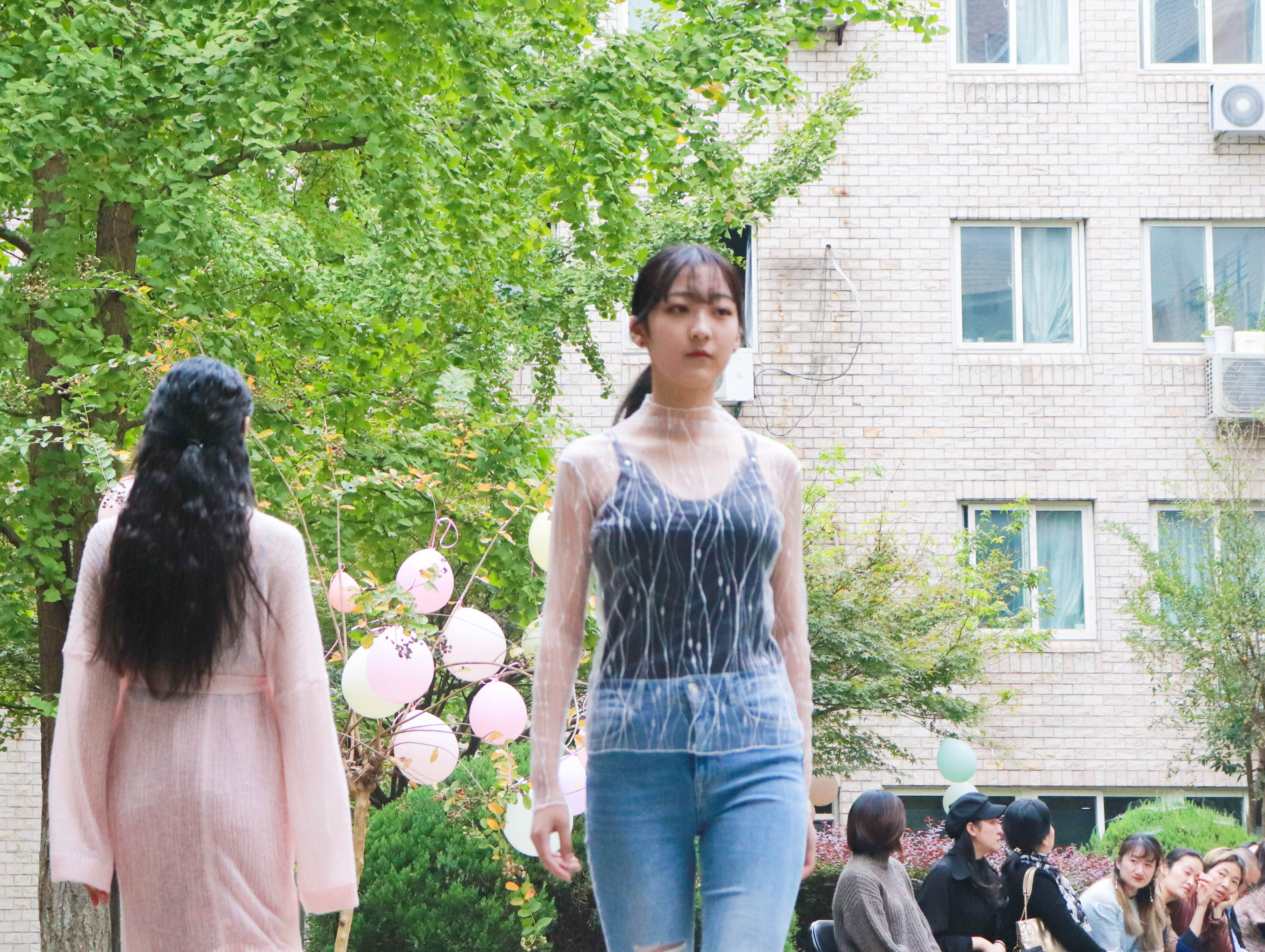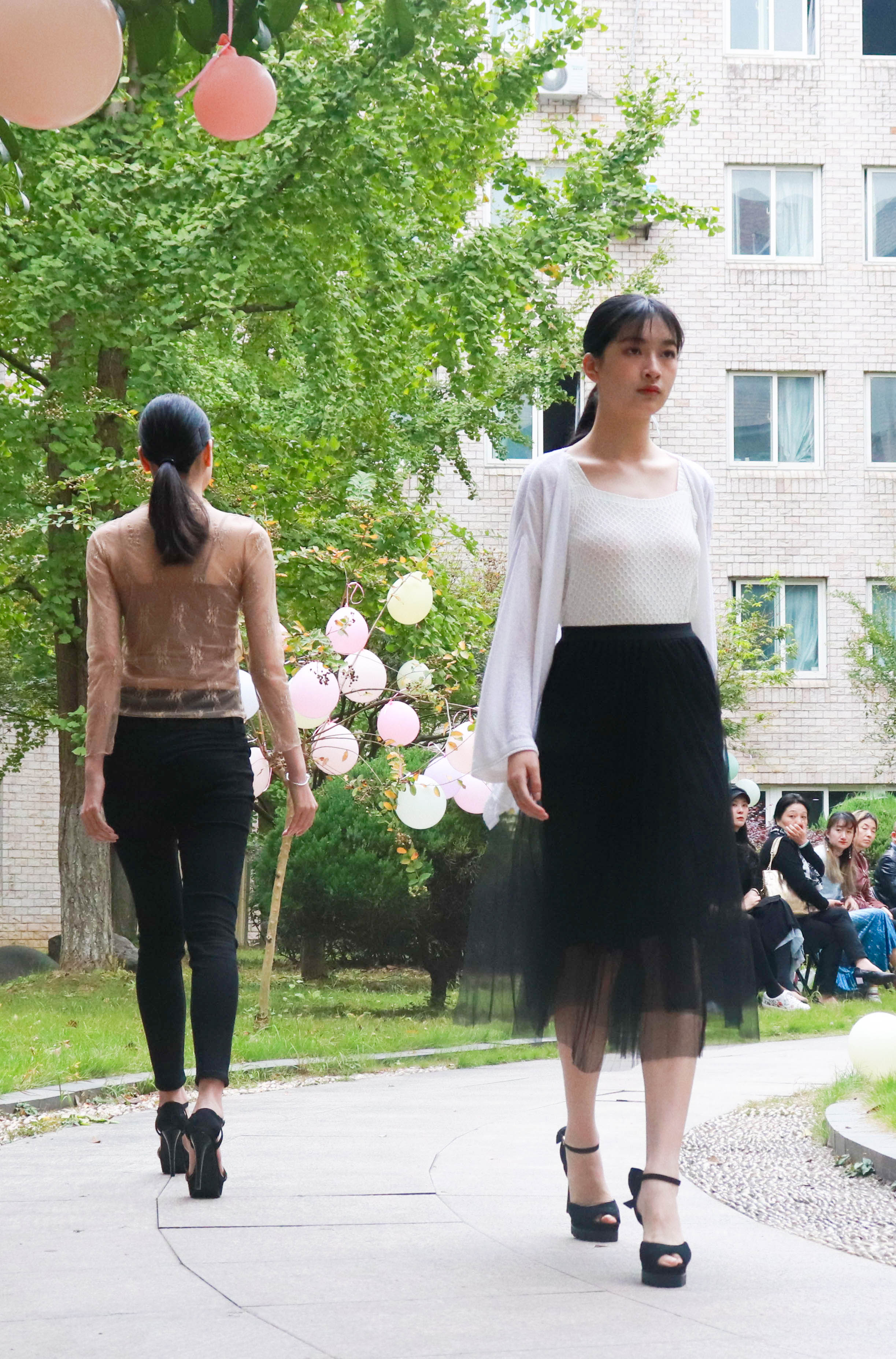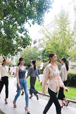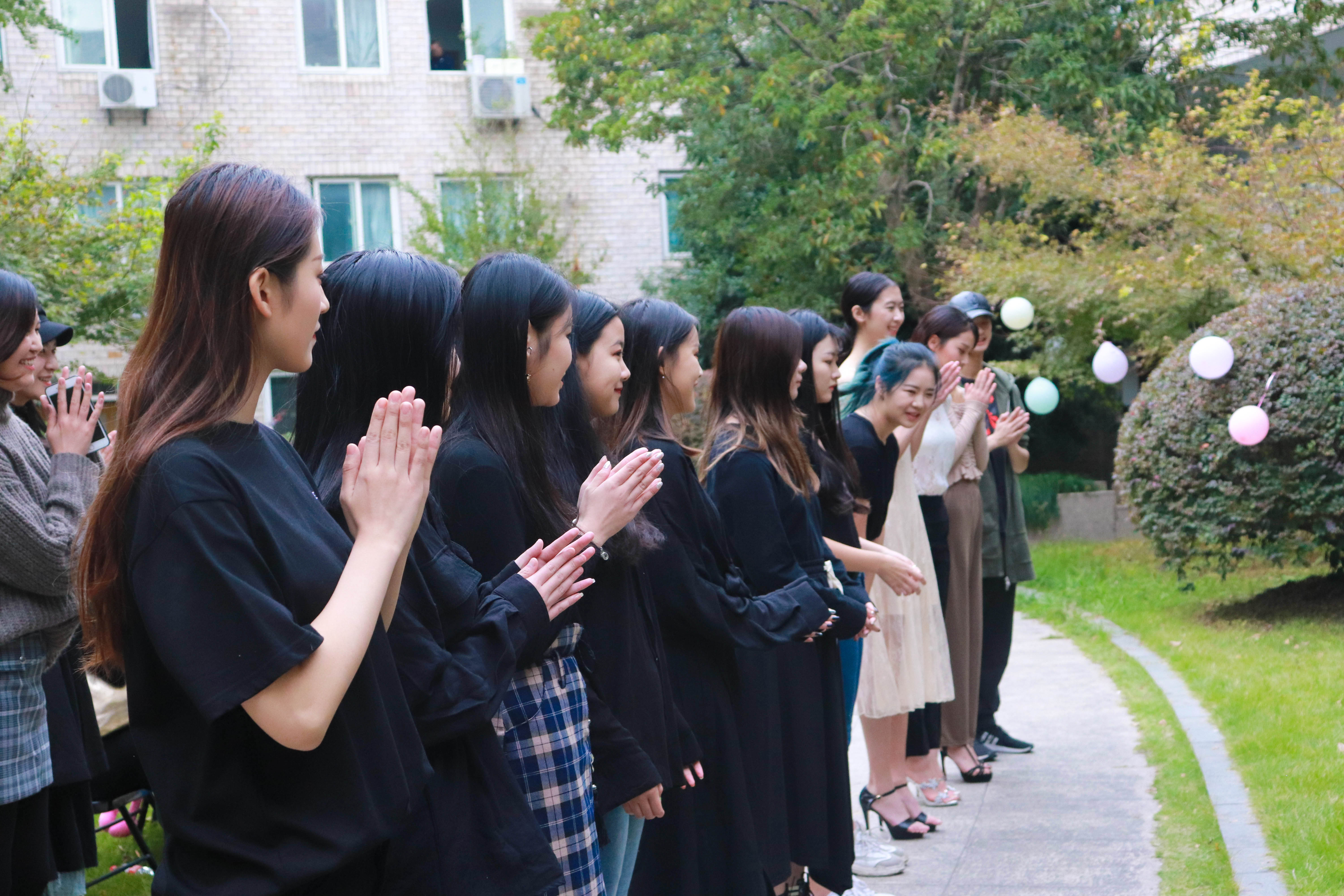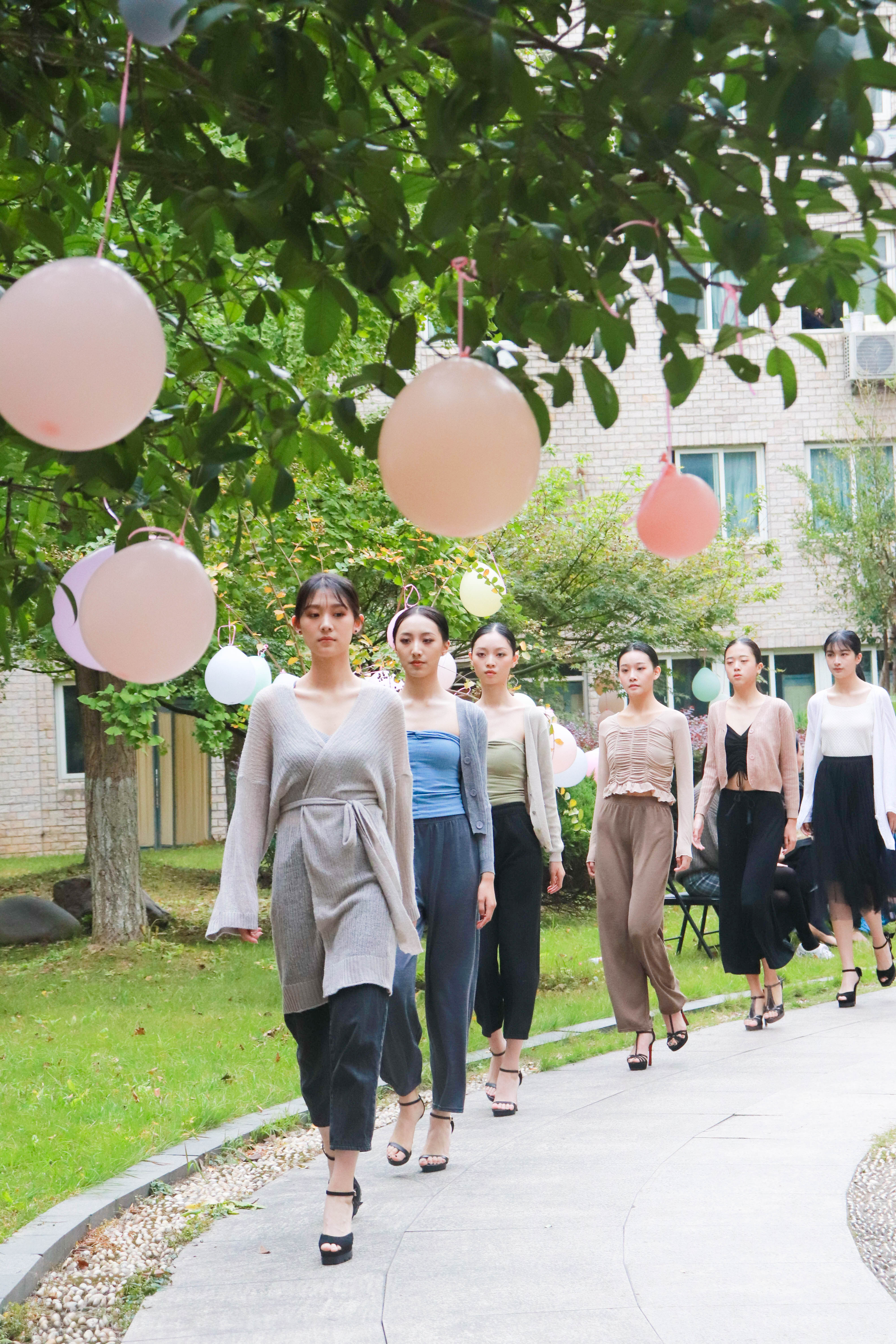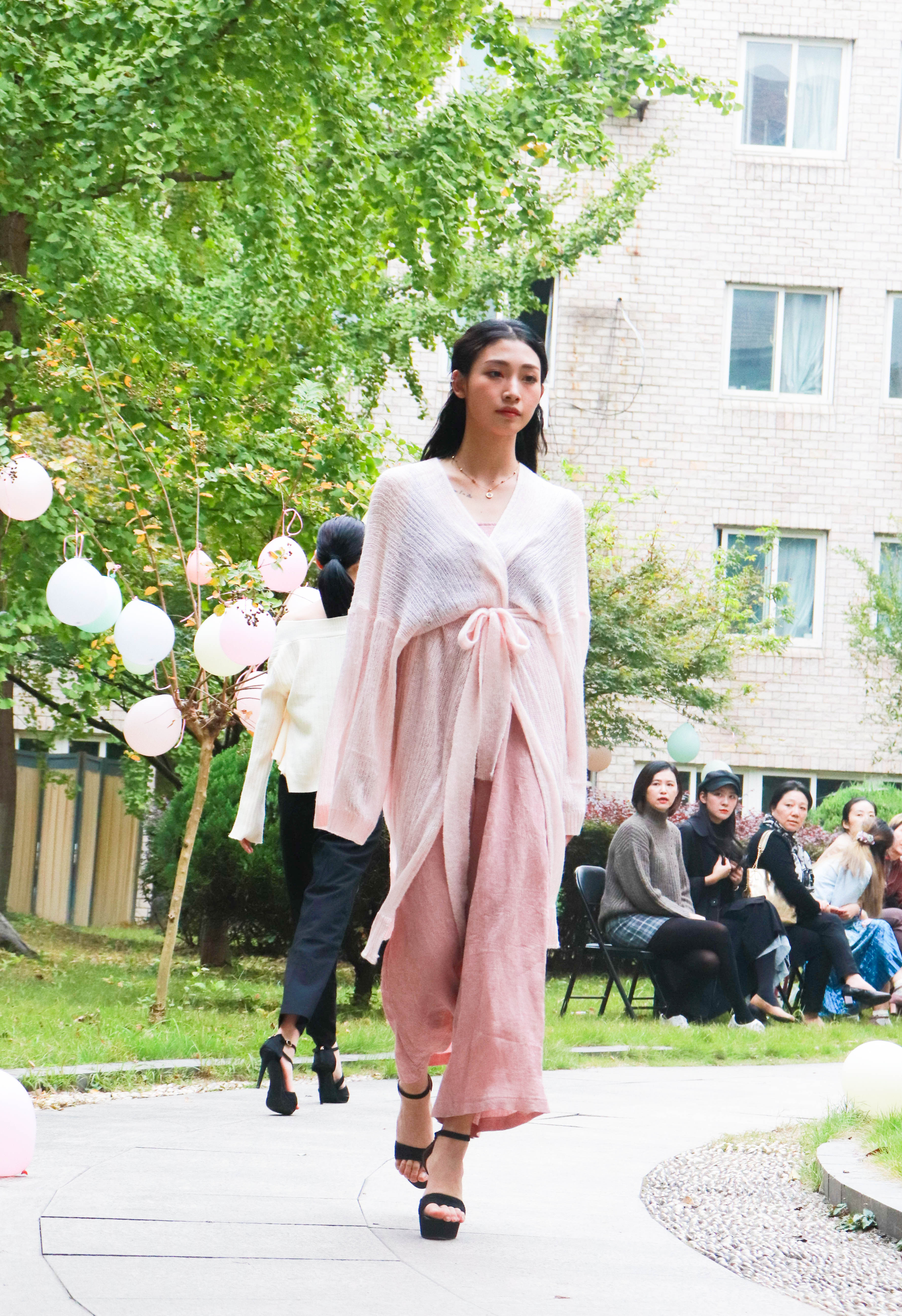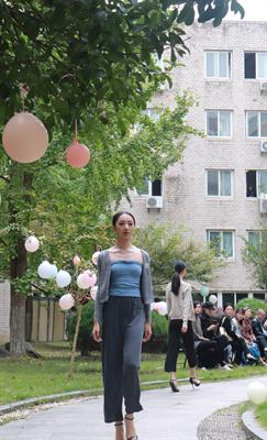 11月2日,浙江艺术职业学院5号楼的中庭花园被装点一番,俨然成了一个与自然融为一体的露天舞台,而花园中蜿蜒的小路就是戏剧系15级模特与礼仪专业五年一贯制班的“T台”,20位身着淑女风时装的同学给老师们带来一场别出心裁的时装秀。