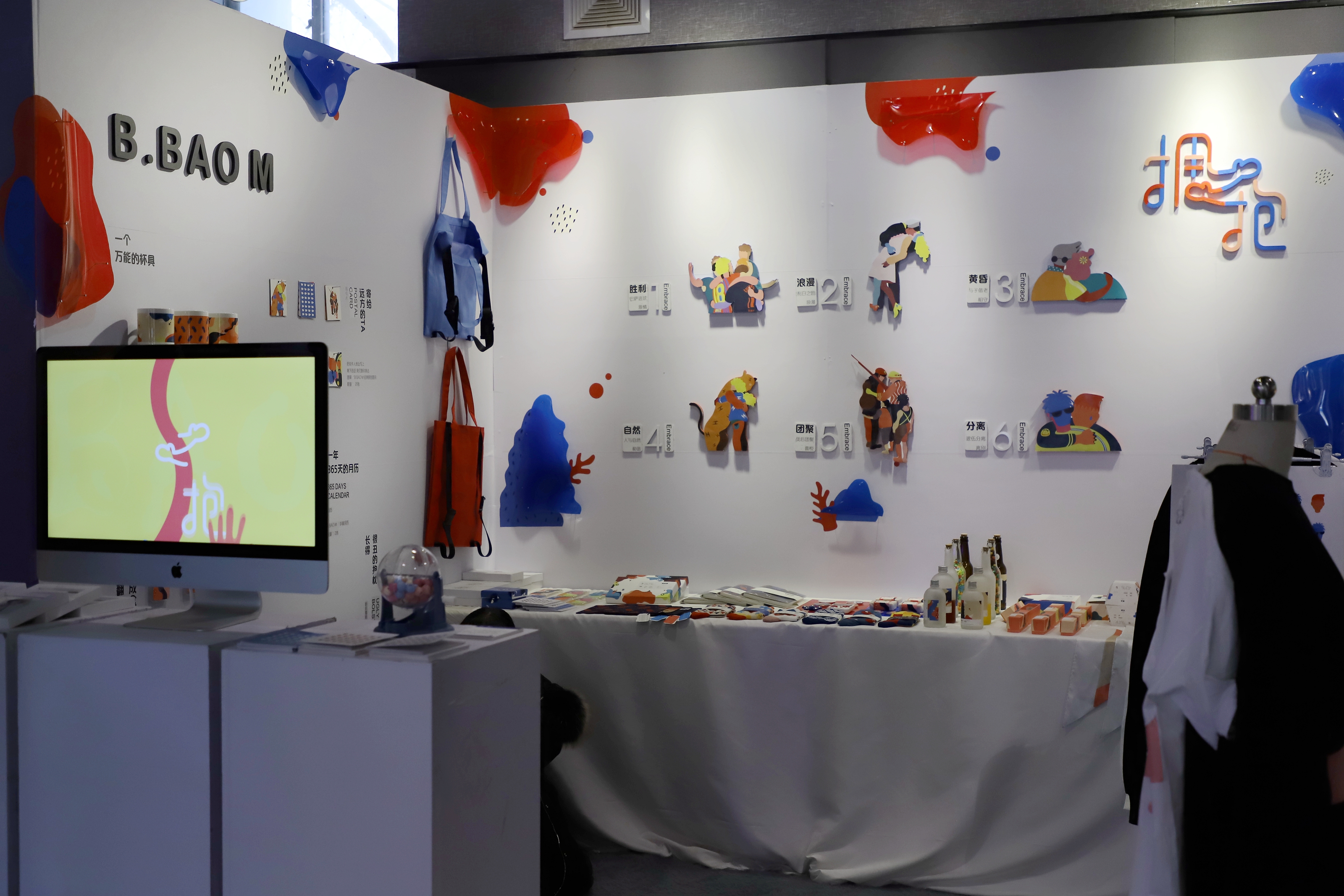 展览现场观众络绎不绝,16级的毕业生不仅拥有过硬的专业能力,还把作品转化为产品,很多产品在展览期间就已被预定。广告设计专业的同学有用敦煌藻井作为灵感来源的,有借鉴古老玉器纹样再创造的,纹路新颖,还有以健康养生、保护稀有动物、“拥抱”等为主题。环艺专业的作品有以神话故事——鲲鹏为背景的模型,造型立体、精细,有以颜色大胆、新颖、结构日式为主的家具、屏风,有要展现现代女性独立自强一面为主题的空间设计,还有民宿、新中式家具等等。