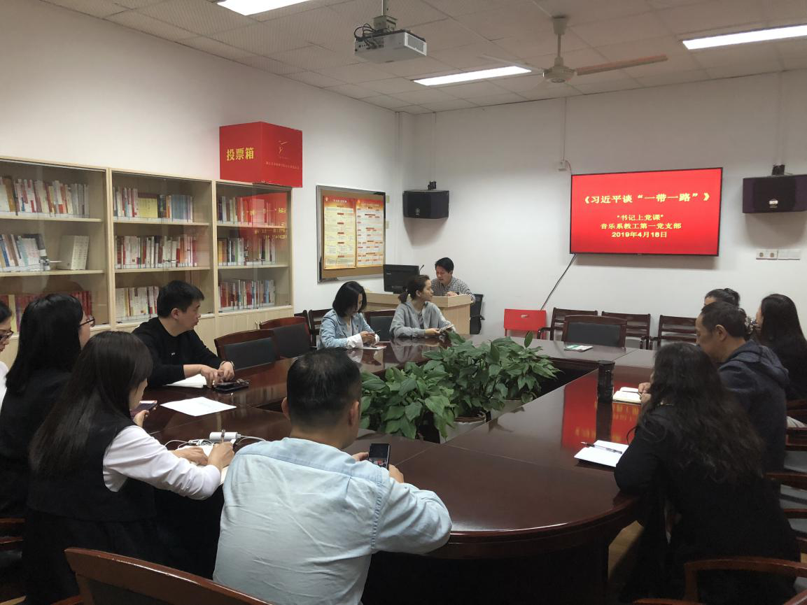 4月18日,音乐系教工第一党支部书记杨晓亮以习近平谈“一带一路”为主线,为全体支部党员上了一堂党课。他表示,教育的发展离不开交流,艺术的发展离不开学习、传承和创新。习近平总书记在今年全国两会上,在看望参加政协会议的文艺界、社科界委员时的重要讲话至今仍记忆犹新。“新时代呼唤着杰出的文学家、艺术家、理论家,文艺创作、学术创新拥有无比广阔的空间,要坚定文化自信、把握时代脉搏、聆听时代声音,坚持与时代同步伐、以人民为中心、以精品奉献人民、用明德引领风尚。”总书记讲话将一直引领着我们的专业发展和创作实践,希望大家共同努力为人民呈现出更加优异的艺术作品。