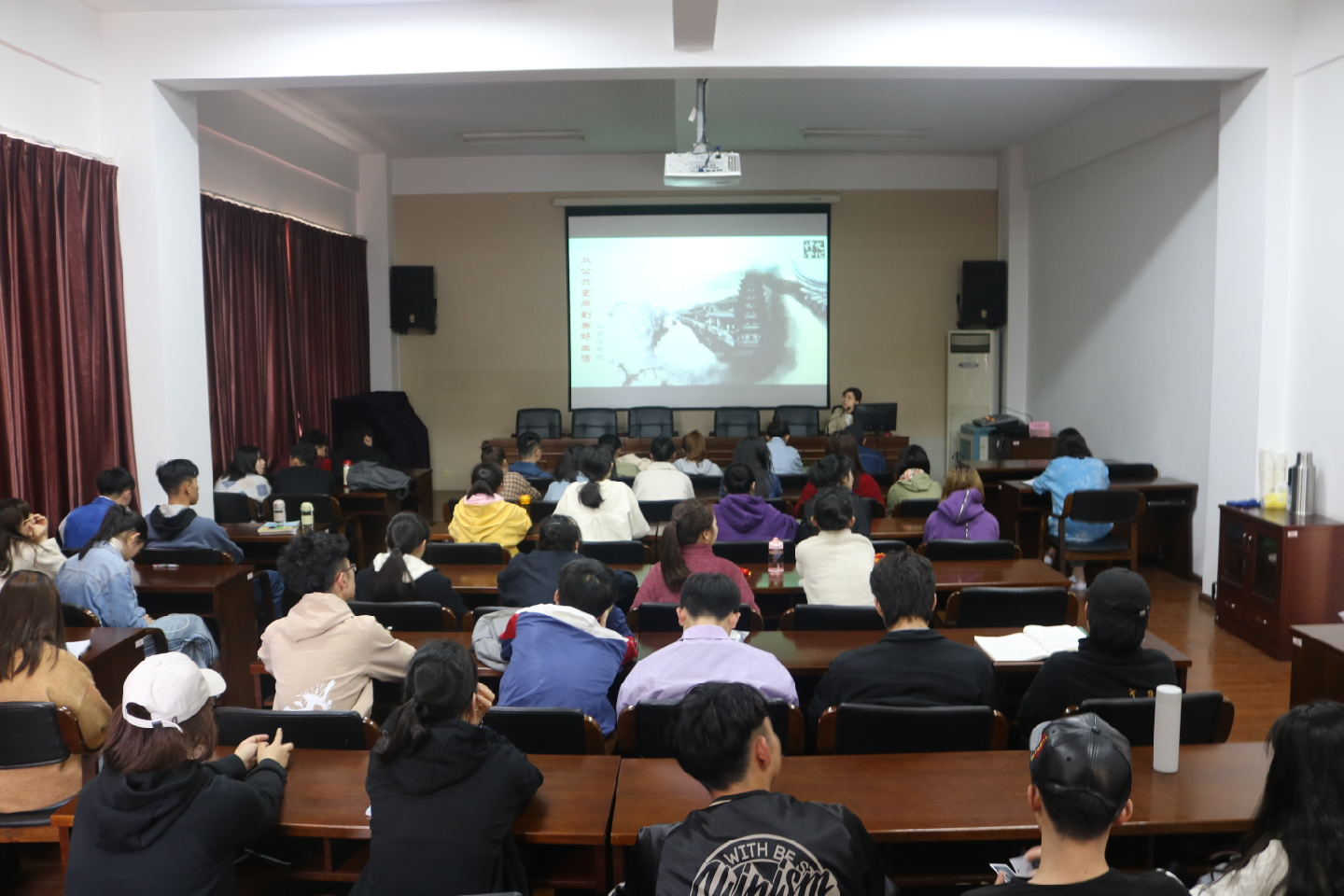 刘秀峰从国家宏观政策层面梳理了浙江省建设农村文化礼堂的重要意义,接着从乡村振兴、人才振兴、文化振兴、生态振兴五个方面讲了如何建设一个有内容、有生气的文化礼堂。同时,也和大家分享了许多浙江省文化礼堂建设的资料,使大家对文化礼堂建设有了更立体的认识。讲座期间,各地区优秀范例激发了同学们的兴趣,同学们一起分享各地村志、族谱等,现场气氛十分热烈。