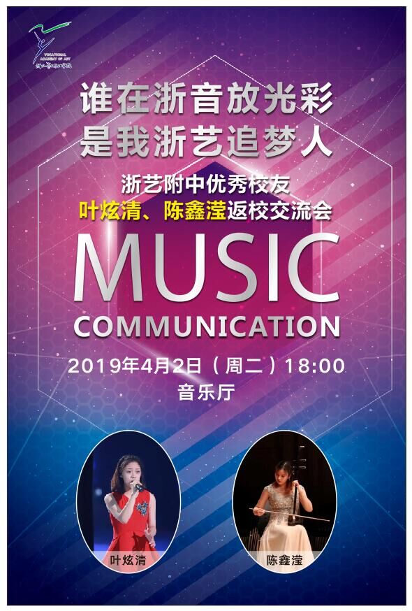 4月2日晚,浙江艺术职业学院音乐厅座无虚席,附中2016届优秀毕业生叶炫清、陈鑫滢返校与音乐系同学讲述她们的故事,分享成功经验。学工部副部长(主持工作)陈毅、音乐系党总支专职副书记谢志勇、音乐系中专段辅导员、部分班主任和音乐系全体中专段学生参加了交流会。交流会由附中学生科科长刘梦伟主持。