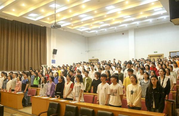 现场,老团员代表为近期新发展的36名团员佩戴团徽。全体新团员在系团总支副书记的带领下面向鲜艳的团旗,举起右拳庄严宣誓。