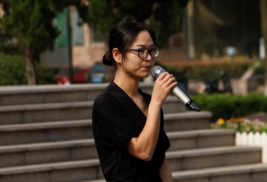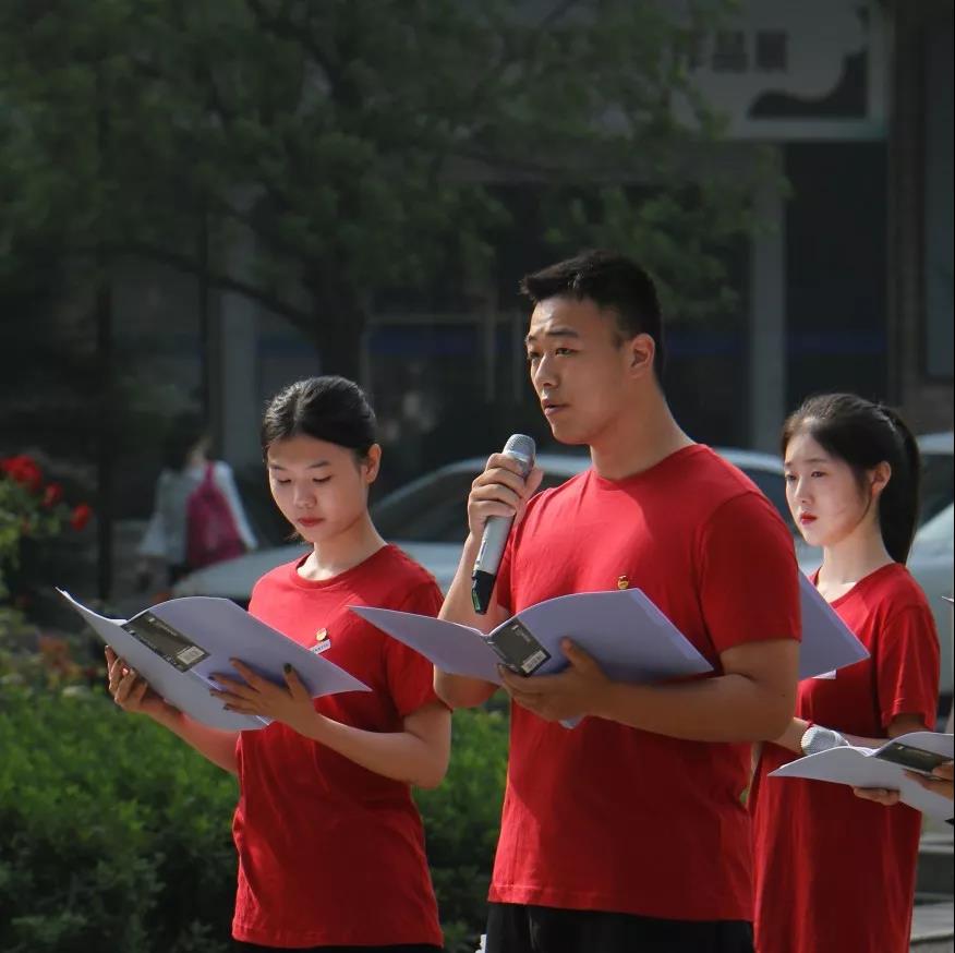 学生党员及优秀团员代表在国旗下伫立诵读,用饱满的情感诵读着《可爱的祖国》与《祖国啊,我亲爱的祖国》中爱国的深厚情感,用充满热爱的语言语调,抒发着人世间纯洁博大的爱国之心。在诵读进入尾声时,同学们都情不自禁的齐声合颂, “祖国啊,我亲爱的祖国!”