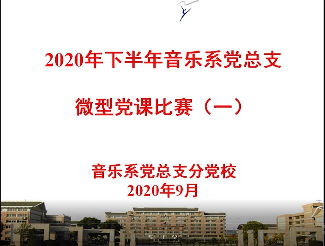 为深入学习贯彻落实习近平总书记关于党史、新中国史、改革开放史、社会主义发展史学习及新冠肺炎疫情防控工作的重要讲话和指示精神,持续深化爱国主义教育,8月至9月,音乐系党总支组织学生党员、入党积极分子开展了“深入学习四史,坚定初心使命”主题微型党课比赛。
