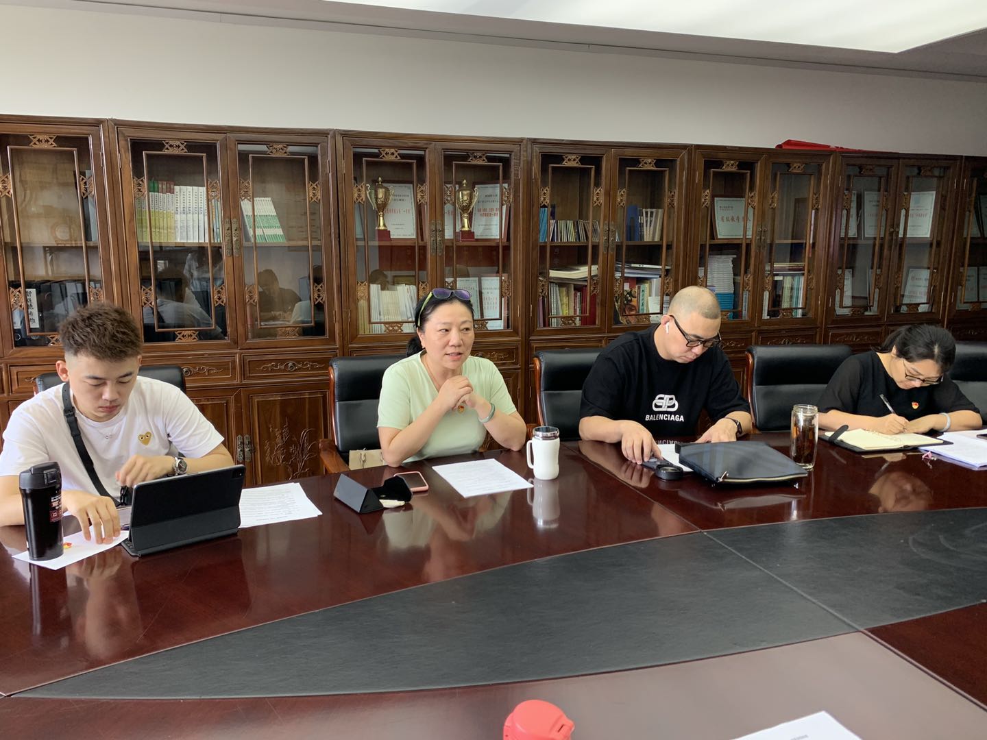 许瑛带领与会人员认真学习浙江省委原书记车俊与第二批集中换届高校新任领导班子成员集体谈话、省教育厅党委关于深入学习贯彻第二批集中换届高校新任领导班子成员集体谈话会精神。重点学习“三个问题”,深入思考如何扛起“四个责任”,提升“五种力”,把省委的新要求内化于心、外化于行,努力做出体现窗口成色的更多标志性成果,在建设“重要窗口”中展现担当、彰显作为。