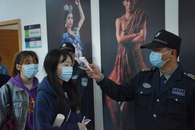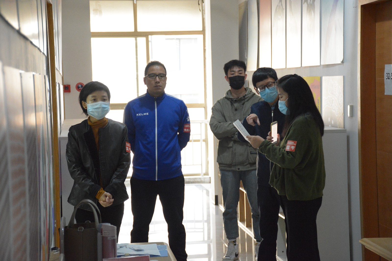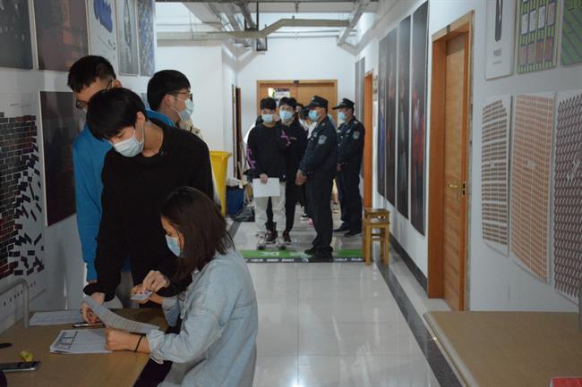 考生有序排队、测温、签到