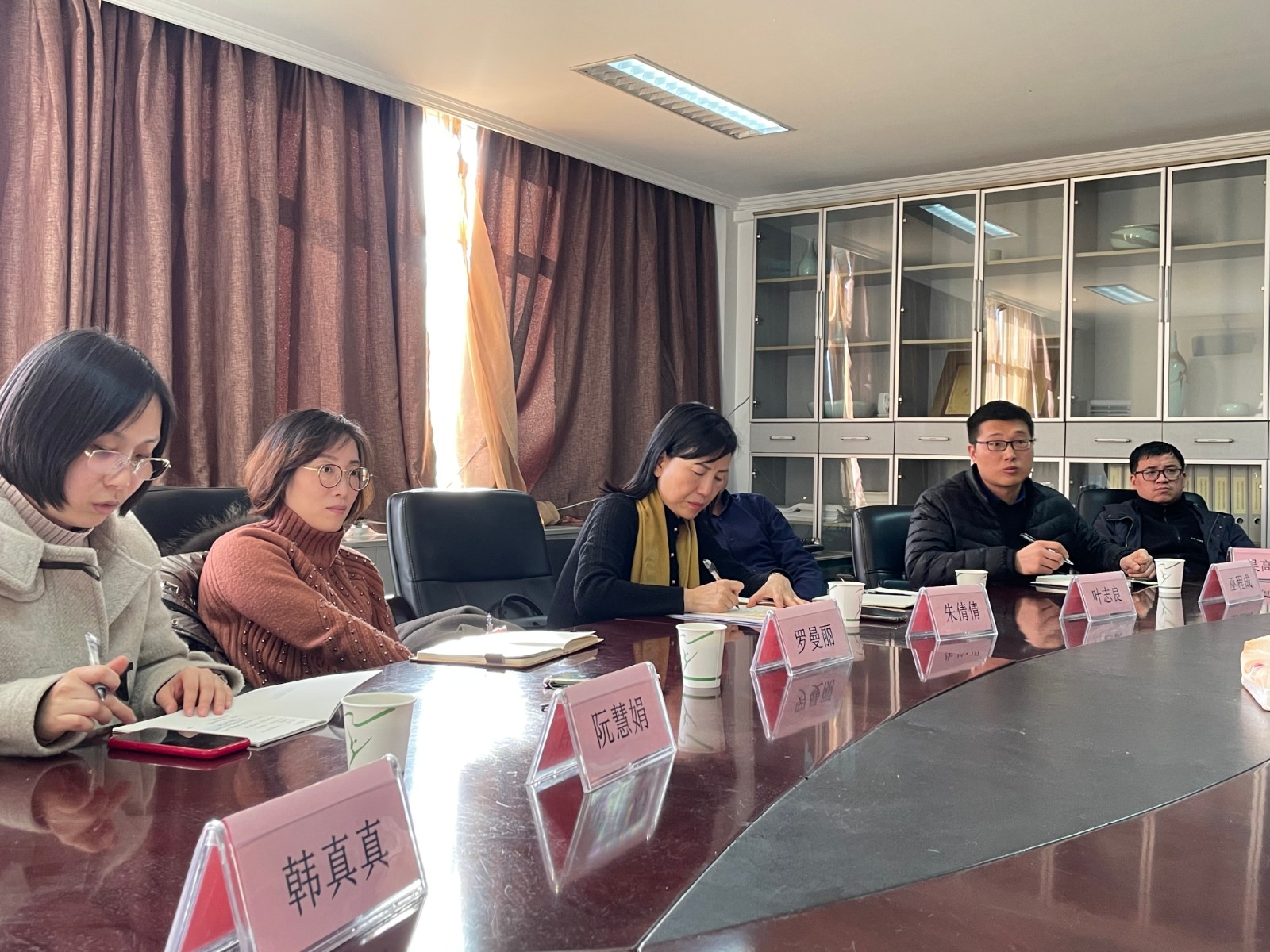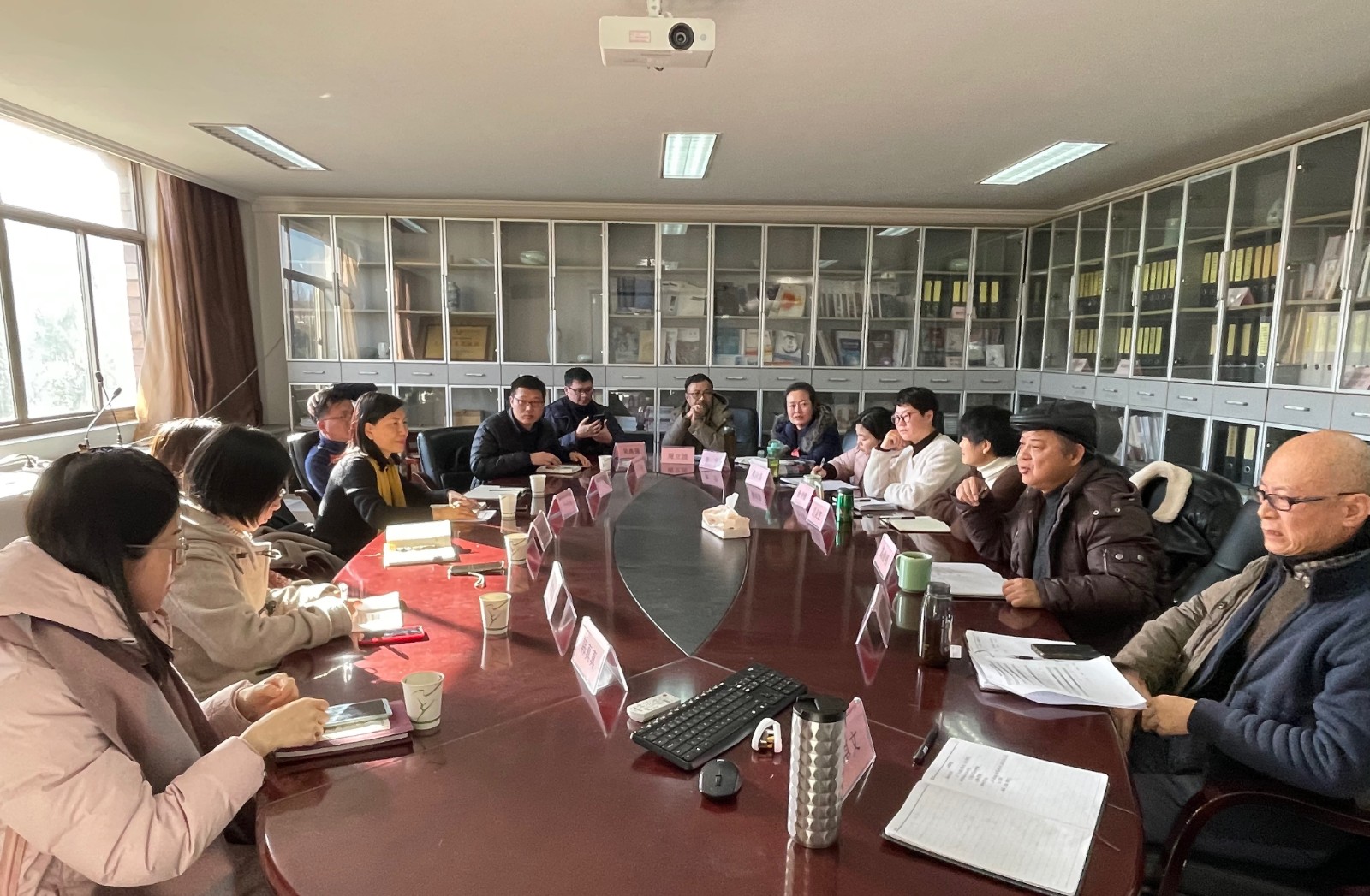 18日,浙江旅游职业学院科研处处长朱倩倩、质量监控办公室主任叶志良、艺术学院院长罗曼丽等一行人来我校科研处、创作中心访问交流。科研处、创作中心部门全体成员到会参加。