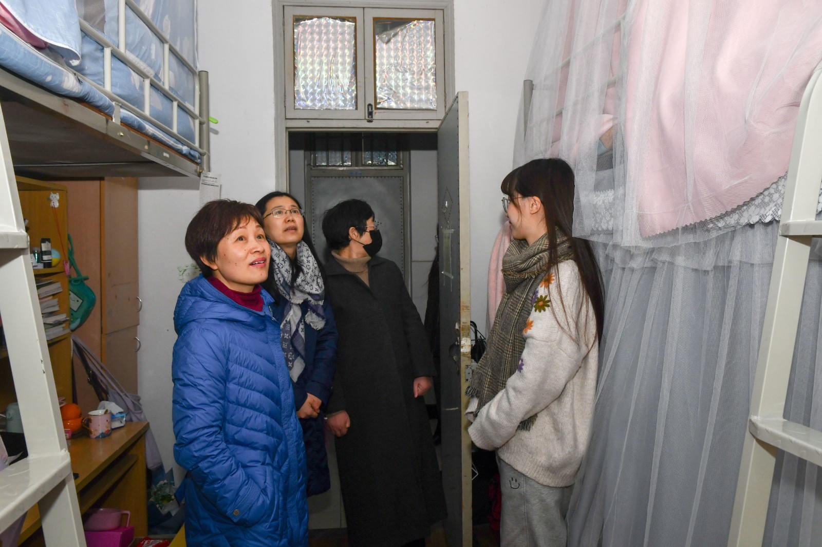 1月12日,文化管理系党总支组织党员教师走进学生寝室,要求学生文明离校、安全回家,叮嘱学生加强疫情防控工作,认真进行假期健康打卡和出省申报的统筹管理。