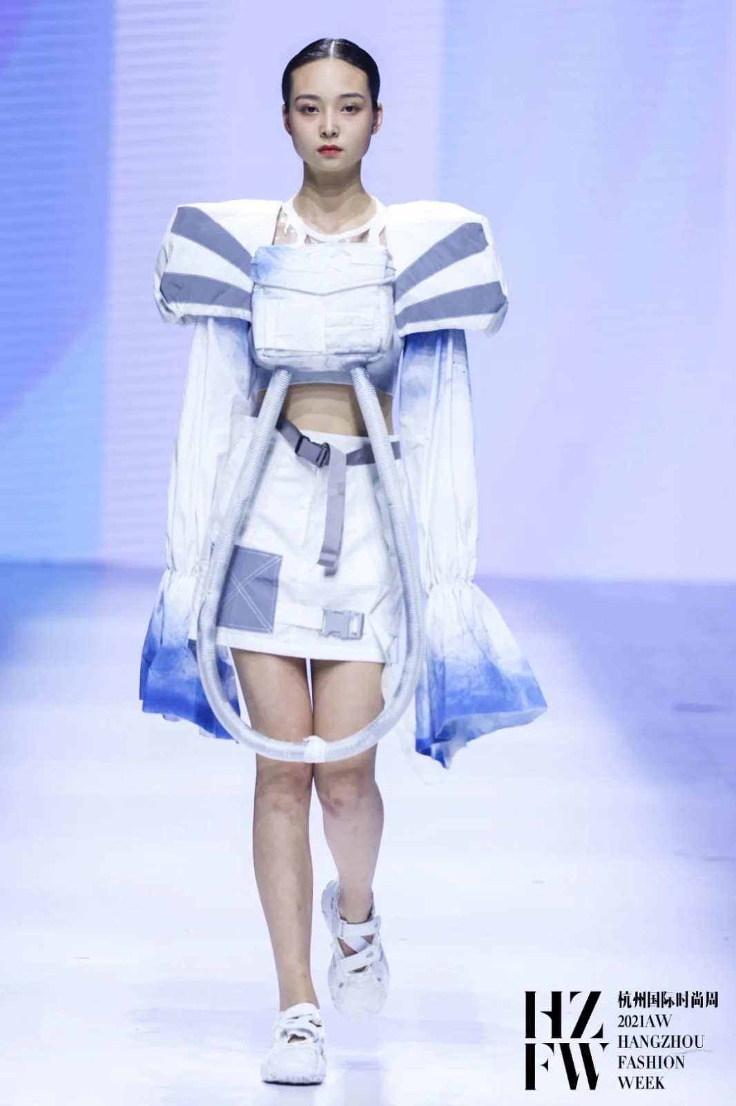 本季服装秀以“衍”为主题,经历了疫情时代的洗礼,年轻的设计师们用有趣的方式诠释可持续的环保理念,无所畏惧又敢于突破传统的审美标准,以另一种人为式的瑕疵之美重新塑造现代新风格。