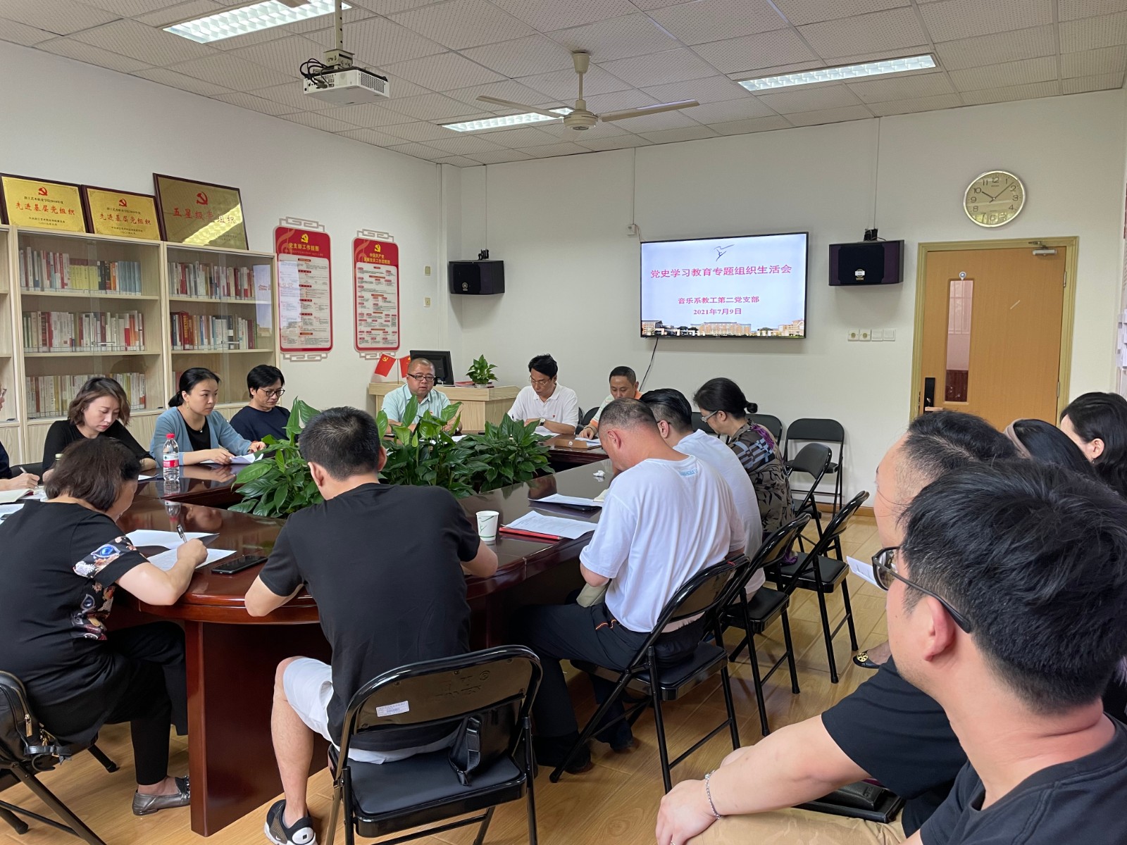 根据学校党委的统一部署,7月7日,音乐系学生党支部通过线上召开党史学习教育专题组织生活会,7月9日,音乐系教工第一党支部、教工第二党支部在系党员之家召开党史学习教育专题组织生活会。组织生活会由各党支部书记主持,党员处级干部以普通党员身份参加。