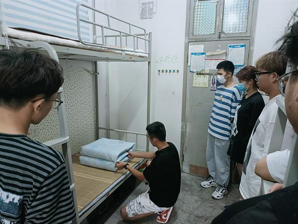 从地面卫生、床铺整理、桌面摆放,教官们耐心讲解,亲身示范,让新生们对寝室内务标准有了更清晰的认知。胡墨智力强调寝室违规违纪,她提醒新生要遵守公寓规章制度,不使用大功率电器、不私拉电线,共同守护寝室这个小家。新生们认真听,用心学,很快掌握了整理宿舍内务技巧,快速整理了起来。
