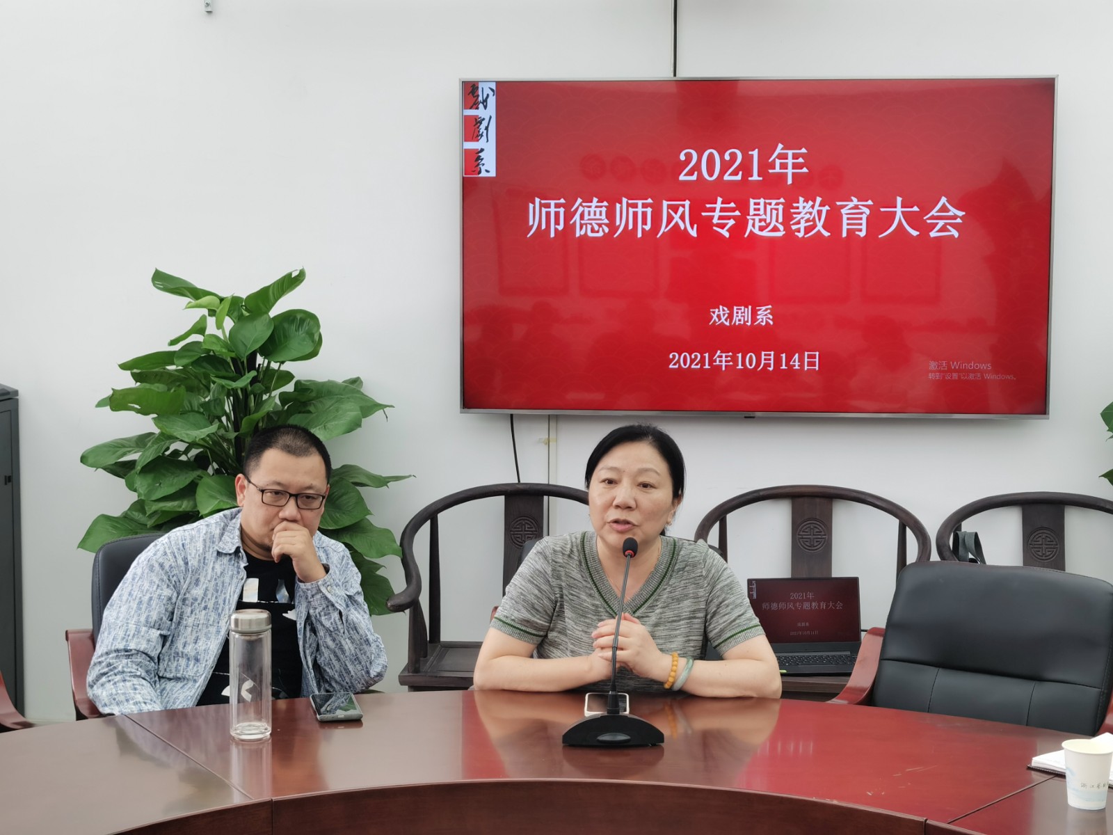 “百年大计,教育为本;教育大计,教师为本;教师大计,师德为本”。根据学校《关于开展师德专题教育活动的实施方案》部署,10月14日,戏剧系在会议室召开2021年度师德师风专题教育大会,全体教师参加。会议由戏剧系党总支专职副书记许瑛主持。