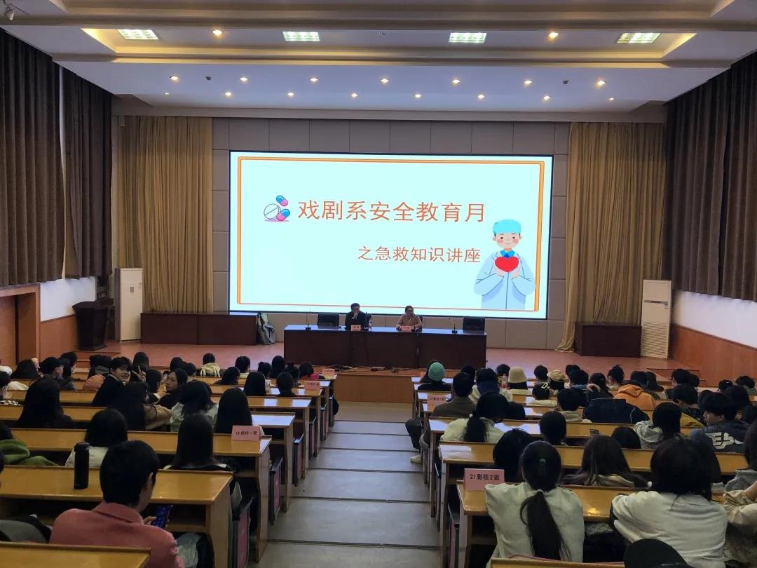 为更好普及急救知识,使学生面对意外情况能做出正确的处理、增强应急救护能力,11月12日晚,戏剧系在图信报告厅举行安全教育月之急救知识专题讲座,邀请中国儿童青少年健康促进工作委员会理事、杭州市儿童医院医教部副主任廖震主任医师作“急救知识培训”。戏剧系党总支专职副书记许瑛主持,戏剧系200余名学生参加。