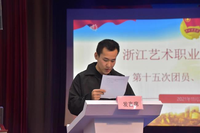 大会在庄严的国歌声中开幕,郑吟对戏剧系第十五次团员、学生代表大会的召开表示祝贺,肯定了戏剧系一年来团学工作取得的成绩。提出三点希望:一是要一张蓝图创品牌;二是志愿服务有作为;三是创新创业寻突破。希望戏剧系团学青年能够秉承浙艺精神,积极进取、勤奋学习,为学院发展贡献青春和力量。