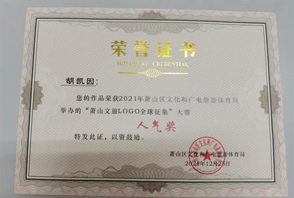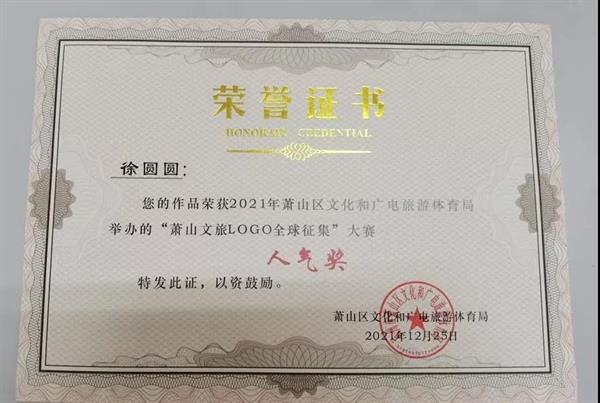2021年9月萧山区文化和广电旅游体育局启动LOGO全球征集活动,自大赛启动征集以来,主办方收到了来自全国各地的LOGO设计方案,共计300余份。20级广告艺术设计班5位同学顺利进入网络评选,3位同学获得人气奖(二等奖)。
