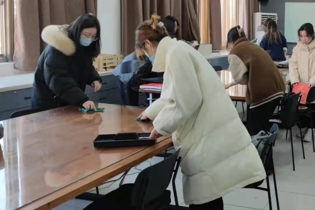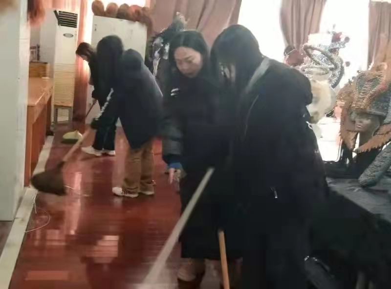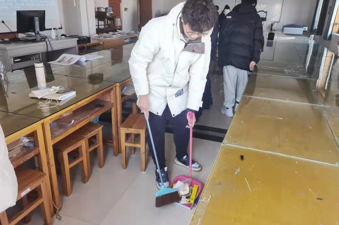 同学们在老师的带领下撸起袖子、弯下身子、拿起扫把,对实训室的各个角落进行全面清理,彻底消除卫生死角,用自己的汗水创造出良好的学习环境。