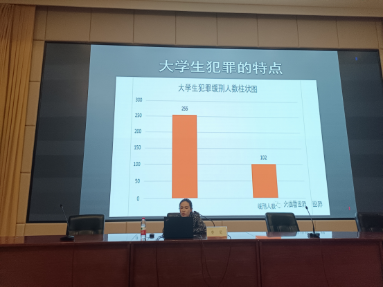 费斐律师以“大学生刑事犯罪与风险防范”为主题展开讲解,她通过分析讲解大学生刑事犯罪的特点、犯罪成因、高频犯罪类型,以案明法、以案示法,来提升大学生刑事风险防范意识。其中,一些和大学生生活息息相关的具体案例引起了同学们的高度关注,如让当前学生深受其害的校园贷、金融电信诈骗、网络赌博等多发案件。费斐从亲身经历出发提醒在场同学们要做到三个“分清”,分清关爱与诱惑、分清虚拟与现实、分清高雅与低俗;做到三个“远离”,远离校园暴力、远离黄赌毒、远离不义之财。