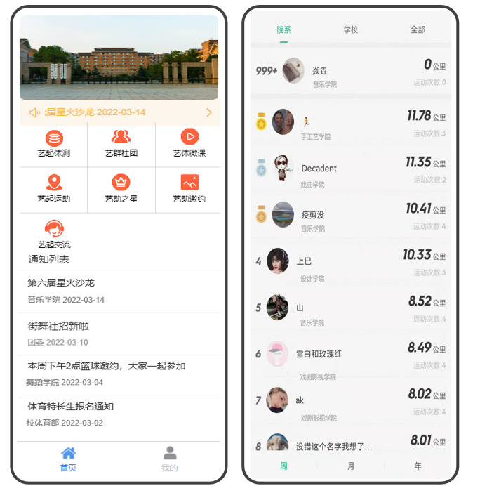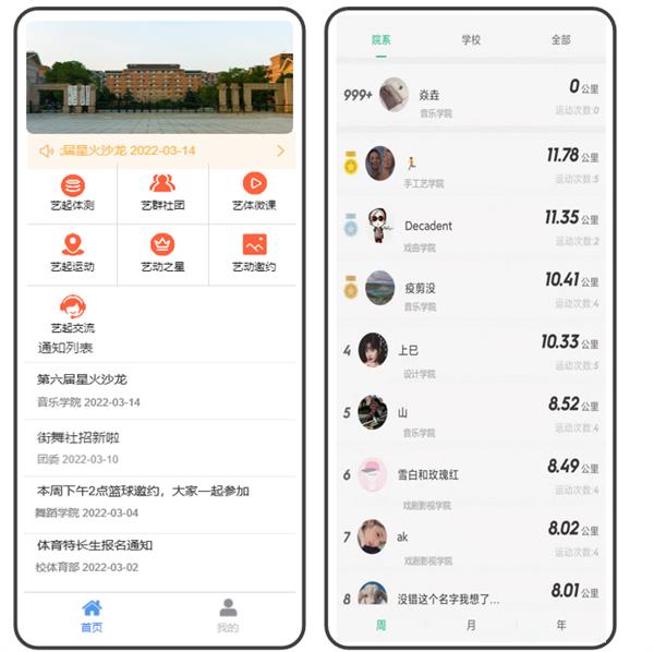我校是第二批高校智慧思政特色应用试点单位“艺”起运动是高校智慧思政特色应用场景“运动啦·活力在线”的子项目。主要通过数字化手段,结合主流移动互联网技术,引入“步道乐跑”作为课外体育活动开展的工具软件,采用基于定向越野的趣味打卡模式进行跑步锻炼, 同学们可在校园内自主安排时间和场地参与,无需人工组织,锻炼情况将自动生成记录,实现智慧化的运动管理。