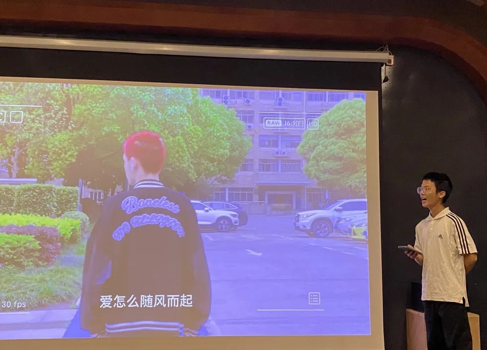 课堂上,同学们上台展示小组mv作品,阐述了创作理念,摄制过程中遇到的一些问题疑惑。李春宇在观看了同学们的作品后,对同学们认真完成作品的态度表示肯定,并对每个作品进行了点评。