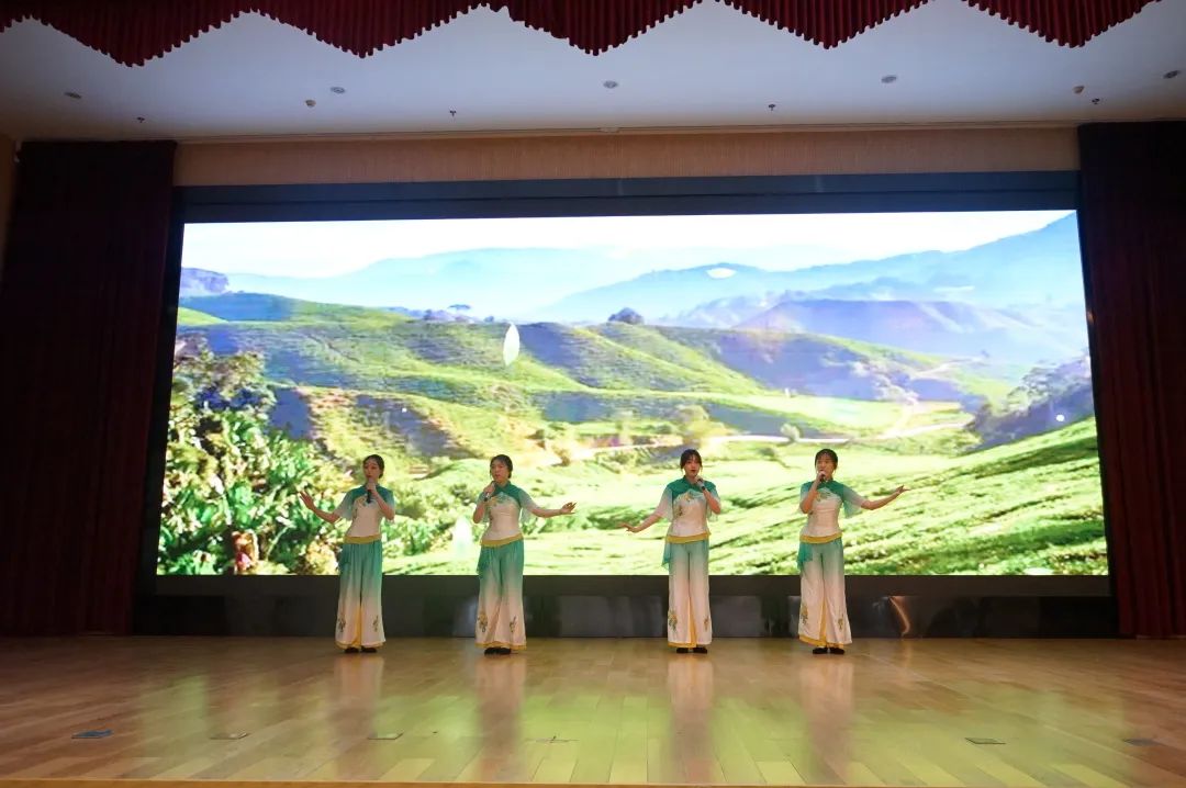 20歌舞班沈娅如、潘颖欣、朱硕、蔡依娜带来的演唱《采茶舞曲》,耳熟能详的旋律响起,悠扬的歌声配合上惟妙惟肖的采茶动作,让观众们体会到了“茶山云雾绕,茶香醉人心”的悠然意蕴。观众席上的爷爷奶奶们纷纷拿出手机记录着每一个精彩瞬间。
