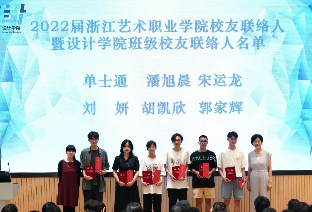 设计学院常务副院长李昌国宣读“浙江艺术职业学院2022届校友联络人暨设计学院班级校友联络人”名单,希望各班的校友联络人能积极发挥作用,架起校友与母校之间沟通的桥梁。