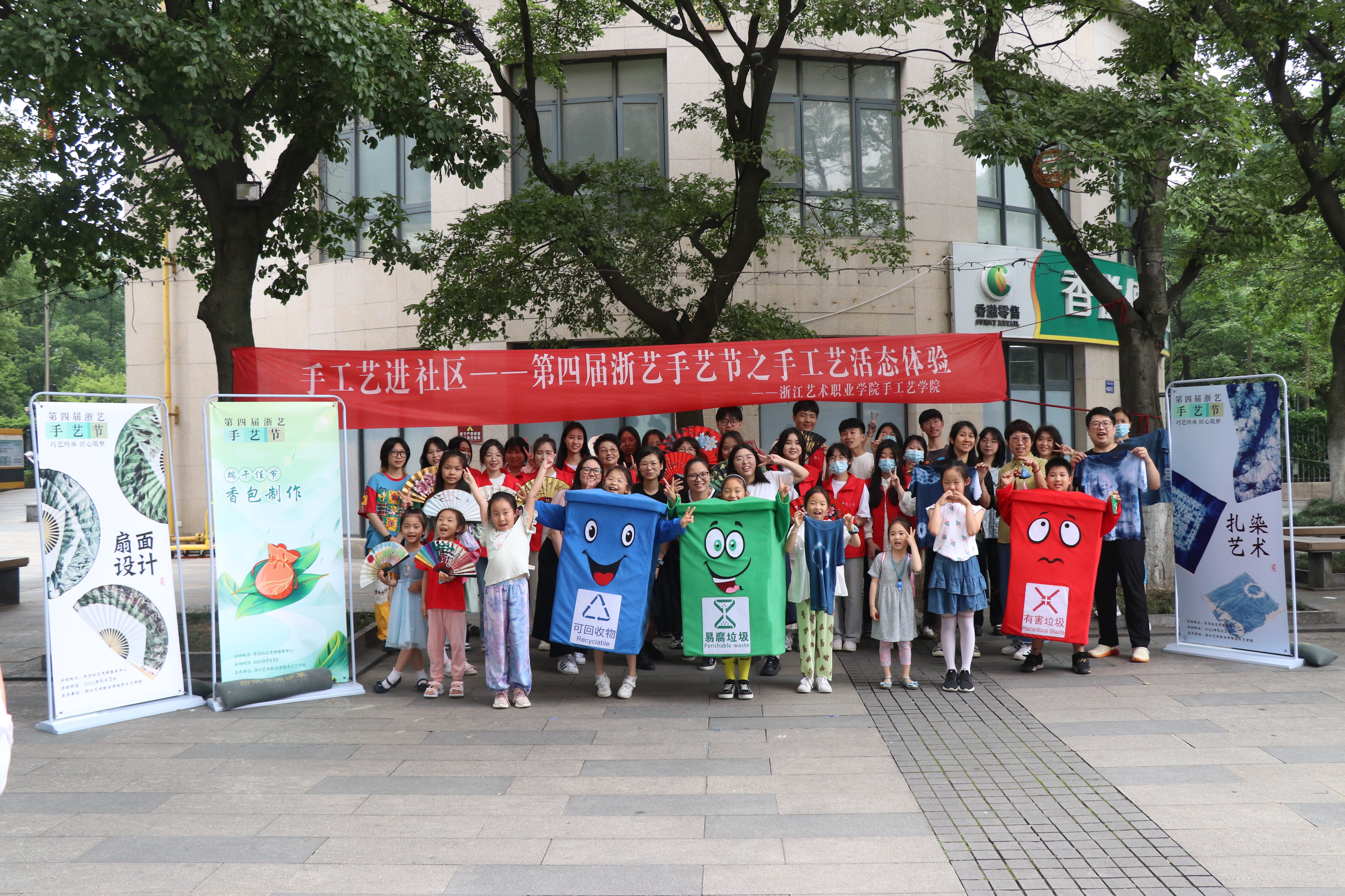 6月3日正值端午节,手工艺师生走出校园走进社区,在东信社区举办了一场别开生面的“手工艺进社区——手艺活态体验”活动,东信社区居委会、社区居民、手工艺学院艺小匠志愿者们等50余人参加活动,现场气氛热烈、座无虚席。本次手工艺活态体验共三个项目,端午香包、创意扎染、创意扇面。