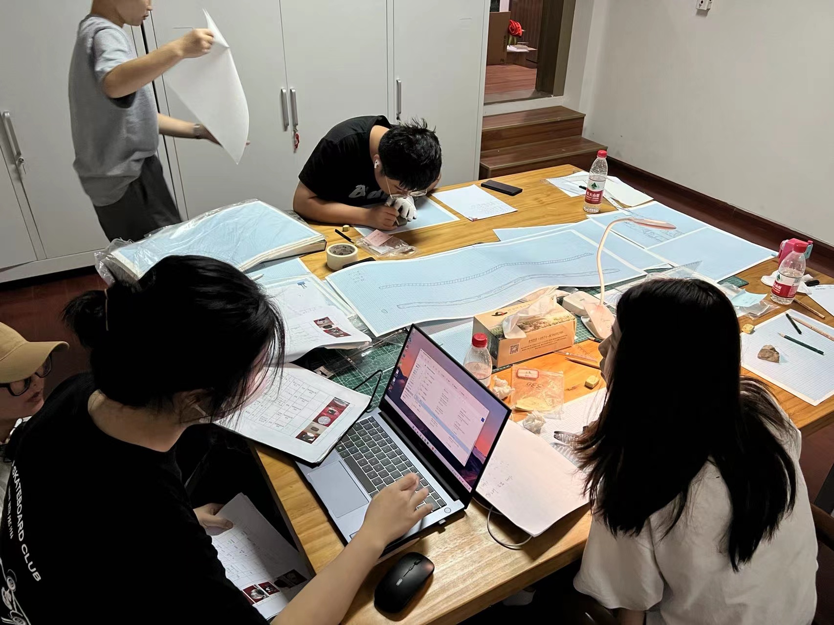 团队成员共计9人,分成绘图组和摄影组,大家各司其职、通力合作。绘图组组员使用测量工具精准测量文物尺寸并手绘记录,由于每样文物的形制、出土状态和材质的不同,在记录过程中运用不同的处理方式,每一件文物都需要团队成员集中精力有序协作完成。
