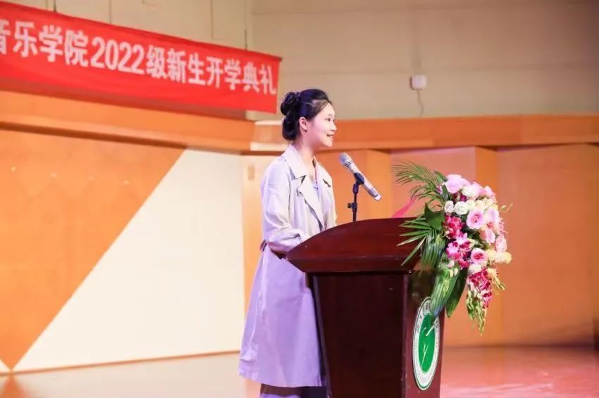 10月18日,音乐学院2022级新生开学典礼在音乐厅举行。校领导、音乐学院领导班子成员、各教研室和中心主任、辅导员、新生班主任及全体新生参加。