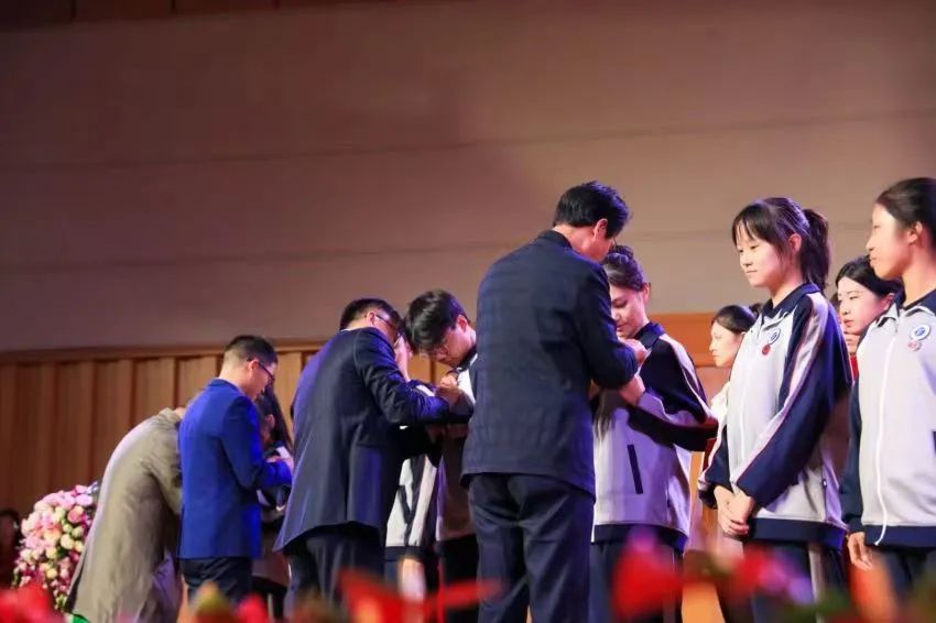 在典礼现场,校领导及学院领导班子成员现场为新生代表佩戴校徽,各教研室和中心主任为2022年上半年“练琴之星”颁奖。全体新生共同观看学校宣传片,作《音乐学院学生自律十项公约》承诺。