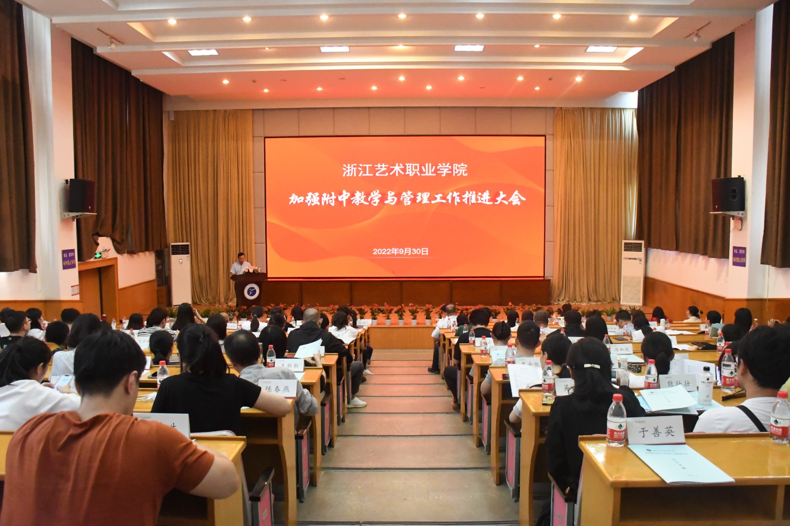 为推动浙江艺术职业学院附中教育办学发展,部署今后的教学与管理工作,进一步牢固树立深化改革、强化发展、优化保障的建设思路,大力提高附中办学水平与教学质量。9月30日,学校在图信中心召开了加强附中教学与管理工作推进大会。校党委书记薛亮、院长黄杭娟出席会议,会议由党委副书记夏开堂主持。
