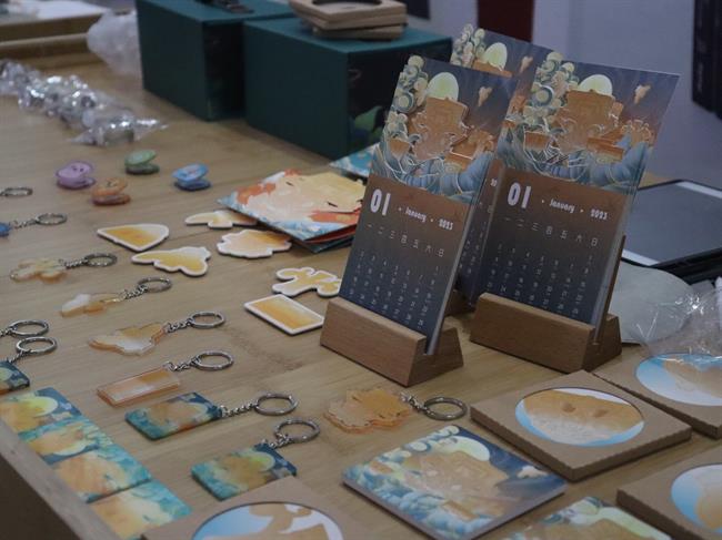 另外,文化创意与策划专业的同学们通过手账、挂件、明信片和摆件等文创产品来展现良渚文化、杭州地域文化,展现文化风韵。