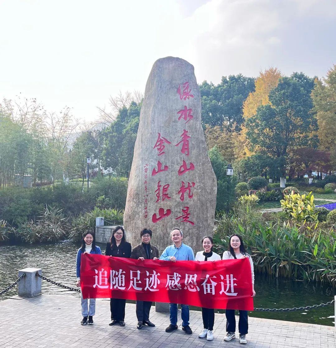 领导班子跟随习近平总书记足迹,走进湖州安吉天荒坪镇余村,探寻“绿水青山就是金山银山”理念诞生的来源与历史,与当地干部共忆蝶变故事,畅谈绿色发展之路。在余村,原余村党支部书记胡加仁为大家讲党课。他从余村的“矿山经济”讲起,详细阐述余村的“绿色蝶变史”。他讲到,修复矿山污染环境是偿还粗放发展的历史欠账、改善人居环境,使人与自然和谐发展的重大举措。粗放型经济带来的惨痛代价,让余村痛定思痛,决心走绿色发展道路,也正是这一决策,让时任浙江省委书记的习近平对村里痛下决心关停矿山和水泥厂、探寻绿色发展新模式的做法,给予高度评价,并在余村首次提出“绿水青山就是金山银山”。
