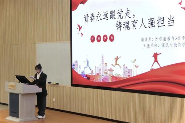 21学前3班李锐琪为我们阐述了实习期间的种种欢乐与温暖,在孩子身上所收获的幸福感和成就感正是“幼有所育,学有所教”的体现。在韶华之时,青年应不忘初心,牢记使命,在学习和实践的过程中紧跟党的脚步,以时不我待的姿态挥洒青春汗水,用一往无前的精神展现磅礴力量。