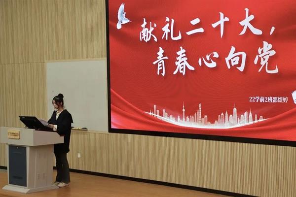 22学前2班姚静怡,逆行时间的脚步,她与李大钊先生对话。她阐述了青年人与党的二十大的关系,展现了党的二十大对青年人的期待,摘录了党的二十大对青年人在新时代的新要求。党的二十大为青年人的阳光大道敞开了大门,青年人为党的二十大的未来铺设道路,正如文中所写“青年如此这般,吾民族当属有望。”