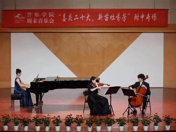 11月4日晚,音乐学院周末音乐会系列演出之“喜庆二十大 新苗吐芬芳”附中专场在浙艺音乐厅举行。附中新苗们给大家带来的节目既有中国民族乐器多元化的呈现,也有西洋管弦交汇的奇妙感觉。学院师生及部分附中家长观摩了演出。