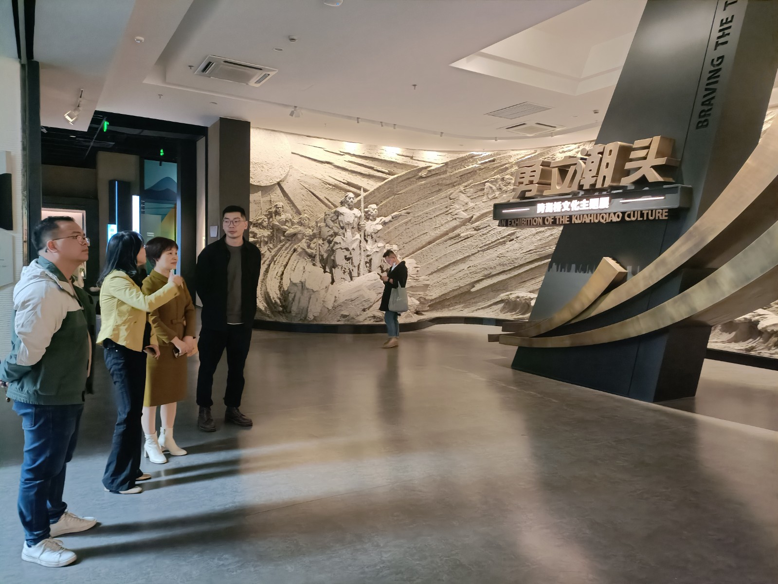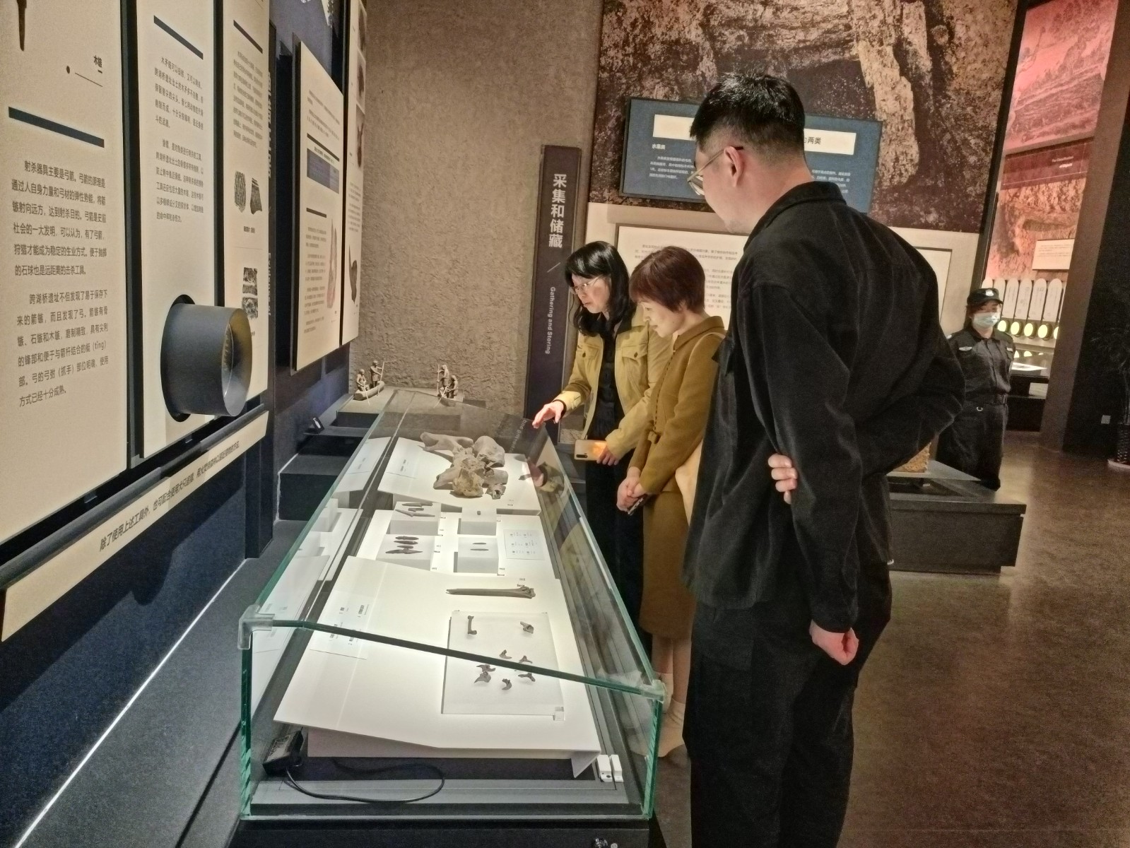 跨湖桥遗址博物馆书记楼卫带领金银琴一行参观“勇立潮头”——跨湖桥文化主题展和跨湖桥遗址原址保护厅,在楼卫绘声绘色的讲解下,我们追迹跨湖桥先民生产生活,领略跨湖桥文化的工艺技术高度,探究跨湖桥先民原始宗教与信仰。