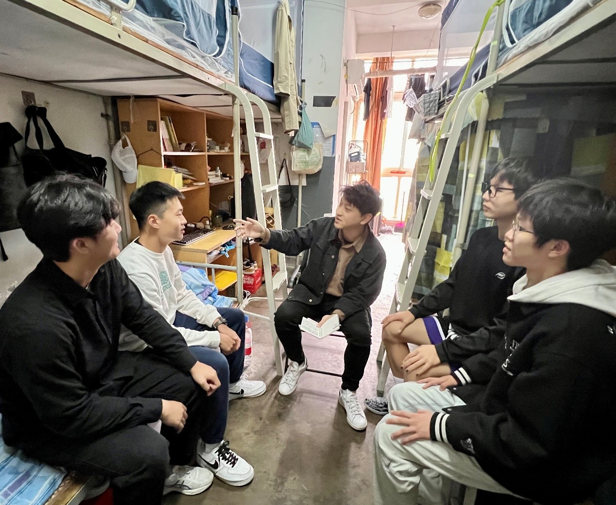 学工部党支部党员室友与结对寝室网格长在1号楼三楼大会议室开展座谈,党员教师们强调,学生寝室是大学生主要生活和学习场所,寝室安全对于每一位学生来说责任重大,守好安全底线,营造安全寝室,也是在学习贯彻落实党的二十大精神过程中对于青年大学生的考验和要求,希望大家在原原本本、原汁原味学习党的二十大精神基础上,以坚定的文化自信、昂扬的青春朝气,听党话、跟党走,立志做有理想、敢担当、能吃苦、肯奋斗的新时代好青年。