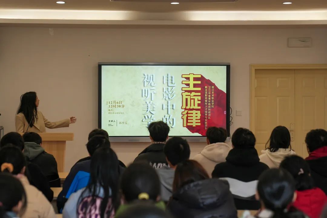 为使戏剧影视学院影视学生深入了解新主流影视作品的视听美学特征,感受新主流影视作品的魅力,12月6日,浙江艺术职业学院2022年度青年教师科研团队“新主流影视青年人才培养与实践团队”教师邱奕雯开展了《主旋律电影中的视听美学》学术讲座。