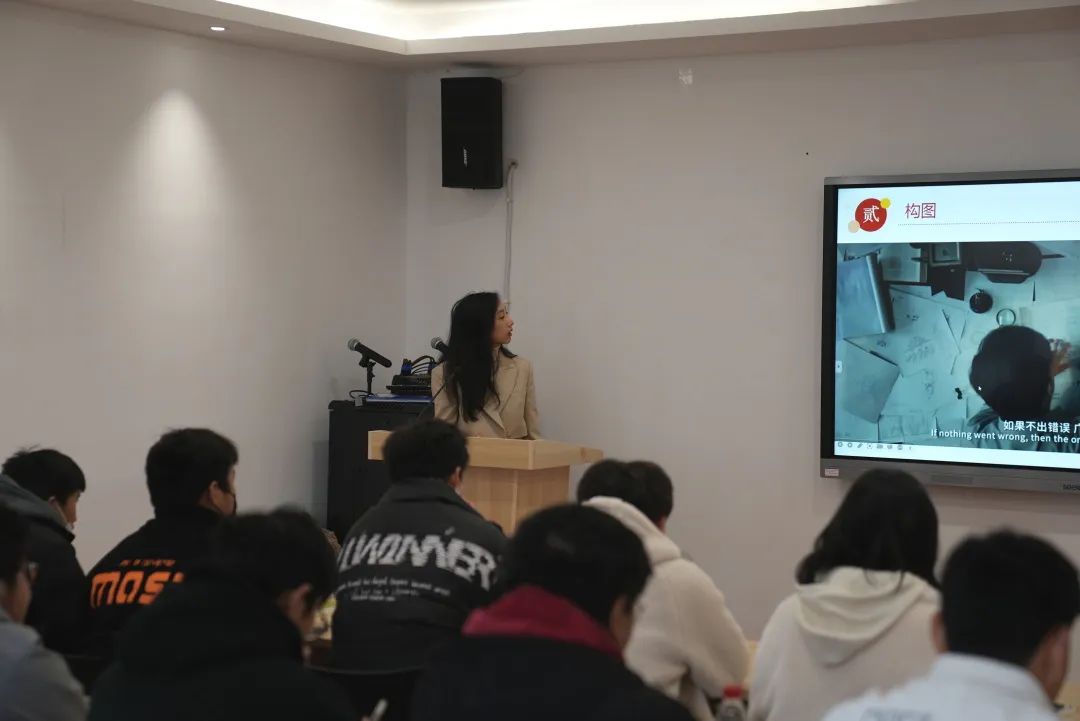 最后,邱奕雯讲解了运动镜头的概念和六种方法,重点介绍了长镜头在主旋律电影中的特殊性,鼓励同学们在电影拍摄中运用多种镜头语言来丰富作品内容,呈现不一样的视觉效果。