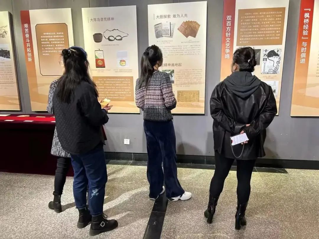 展览通过对中国共产党“四史”、浙江“三地”的梳理,精选四个不同历史阶段的100件浙江革命文物,生动讲述了中国共产党在浙江热血激荡的百年风华和百年历程。全体党员教师沿着百年历史脉络,认真上好这堂红色教育主题党课,仔细观看、深入交流,从一件件珍贵的文物展品,一份份厚重的档案文件,一张张生动的历史照片中感受中国革命文化沉淀,汲取干事创业的精神力量。